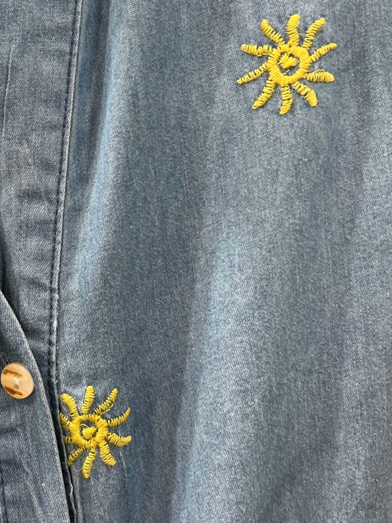 Camisa denim sin mangas con bordado de soles