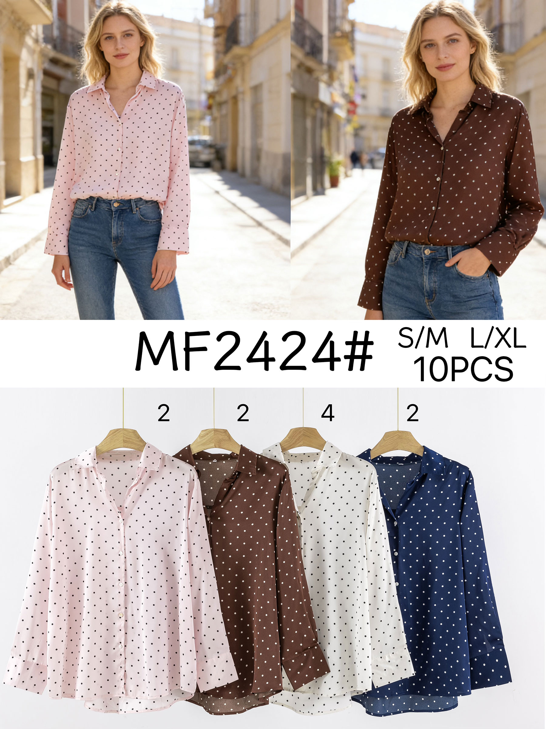 Camisa satinada de lunares