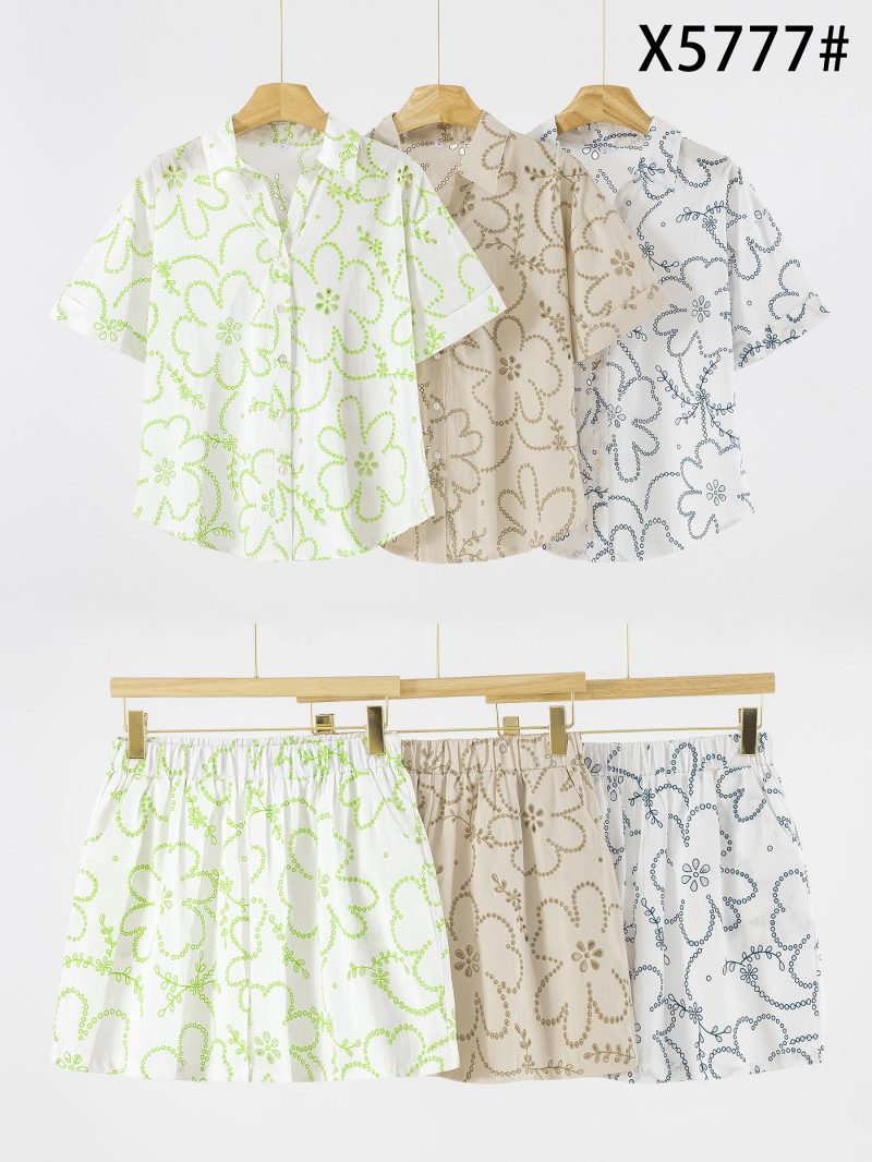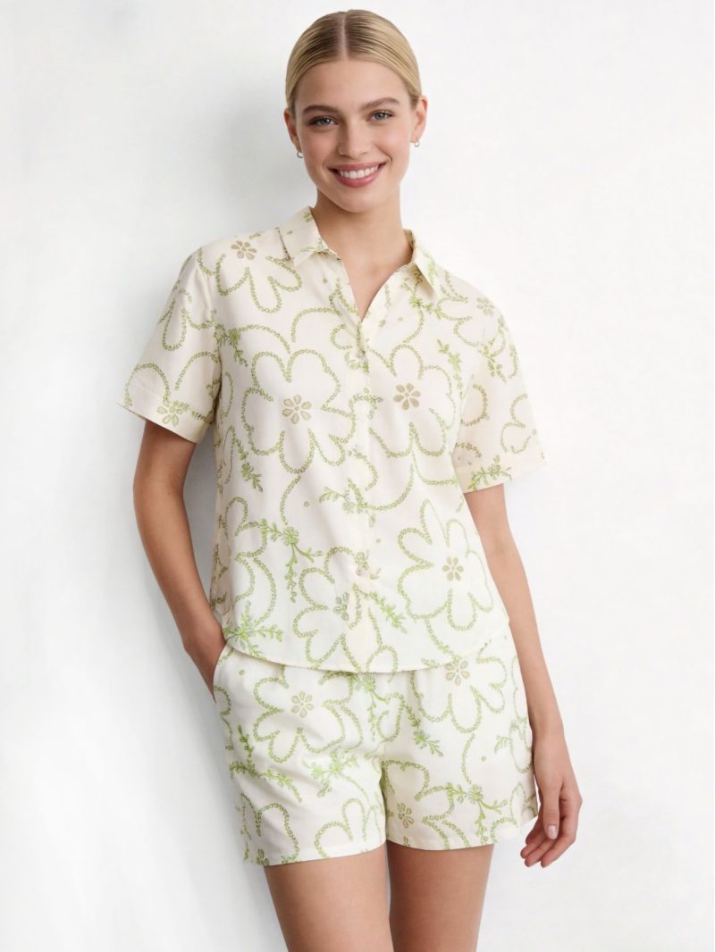 Conjunto de algodón estampado flores con detalle calado: camisa y short