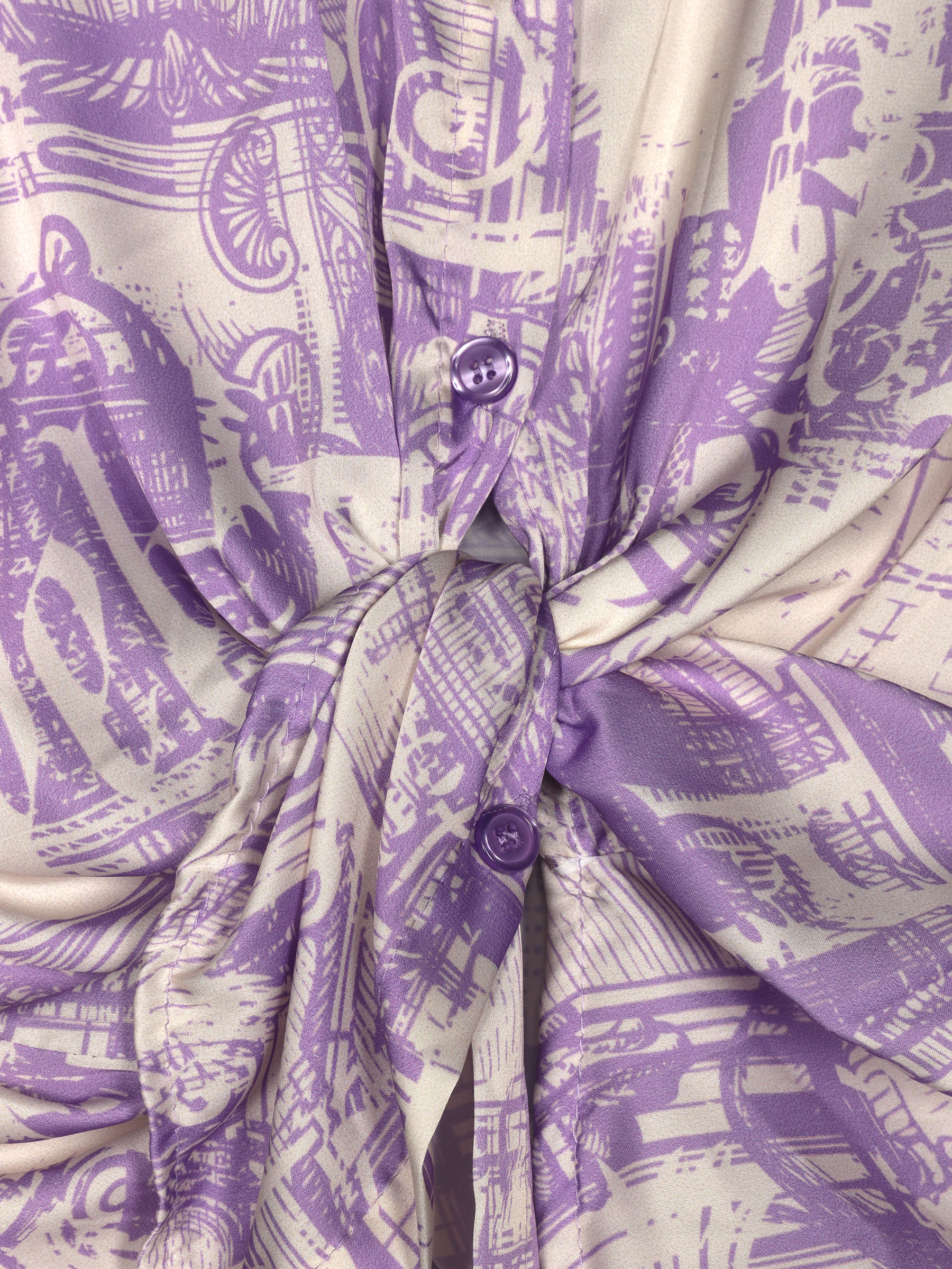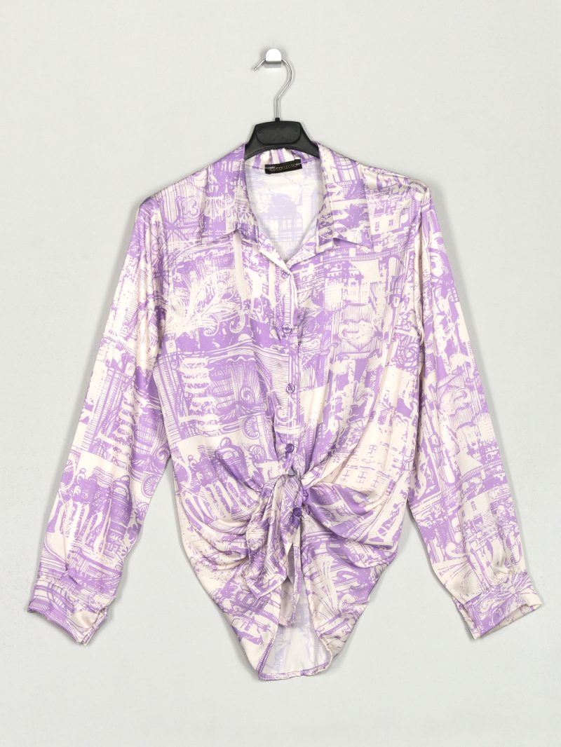 Camisa satinada estampada. Cuello solapa. Cierre mediante botones. Manga larga.