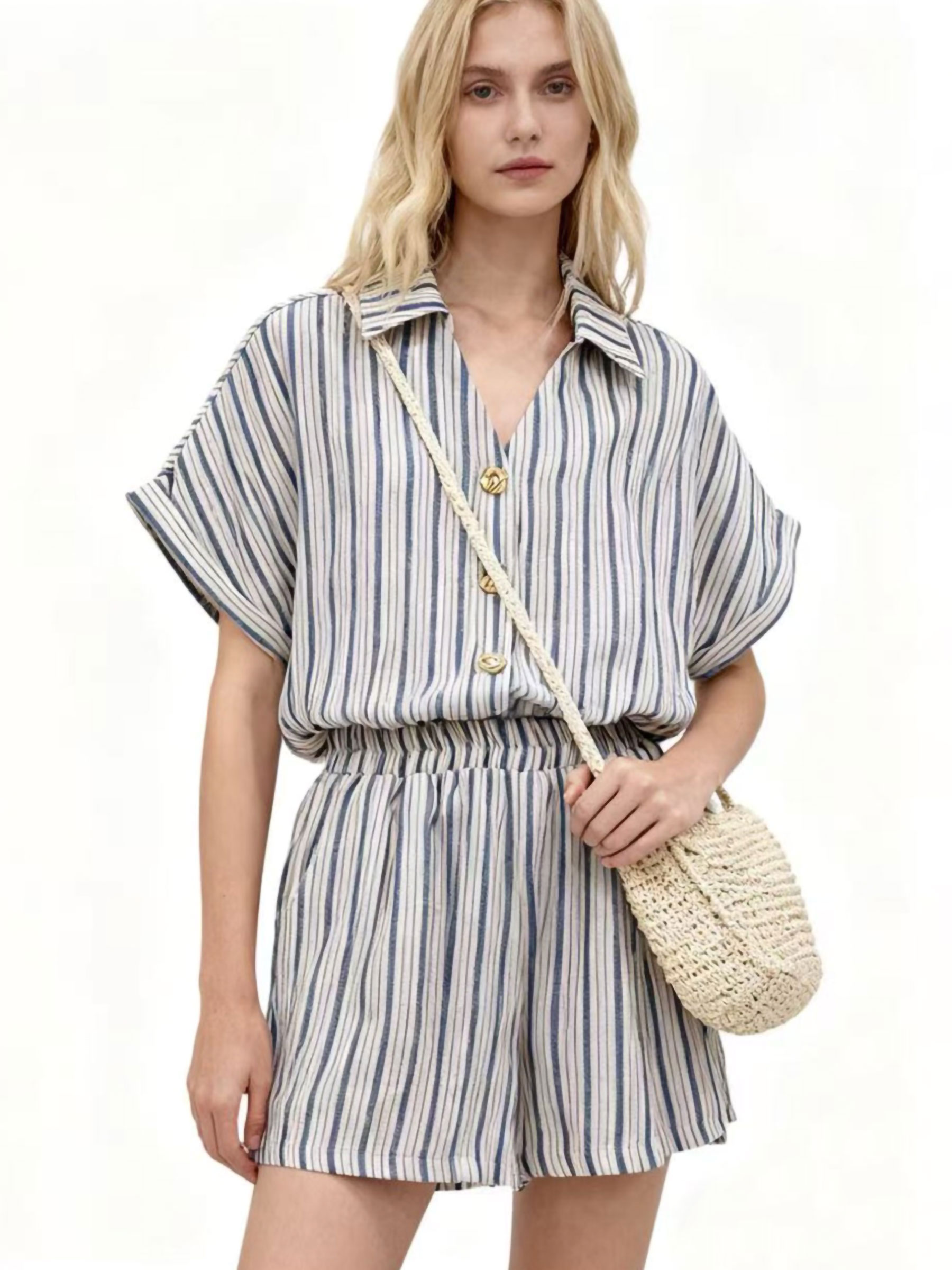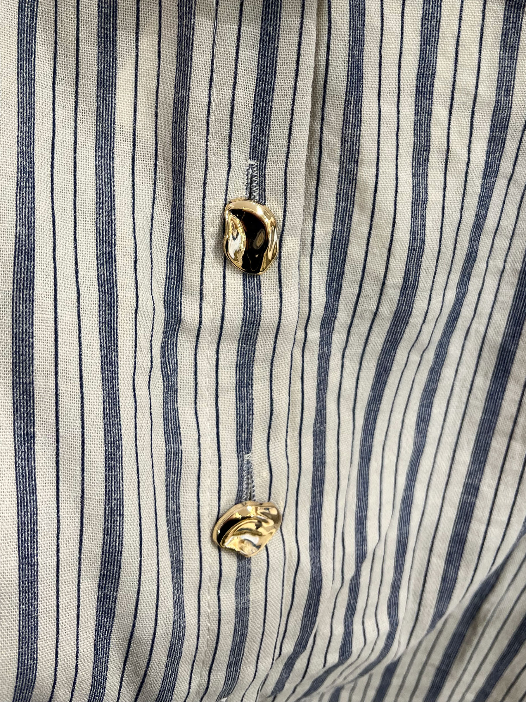 Conjunto de efecto lino: camisa rayas con botones dorados y short
