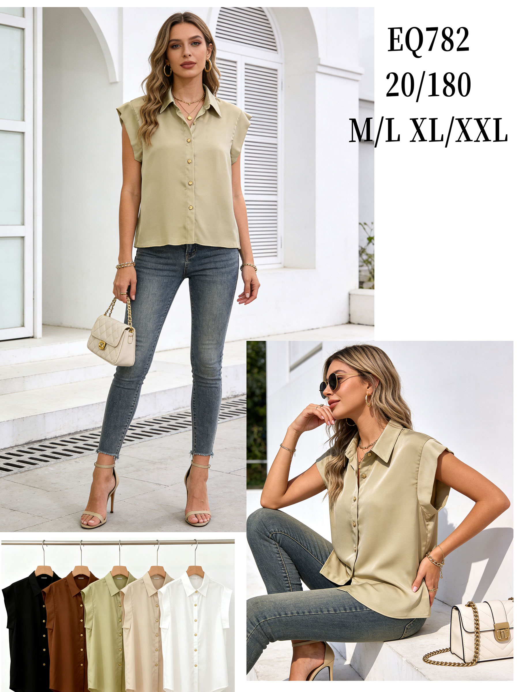 Camisa satinada sin mangas botones dorados