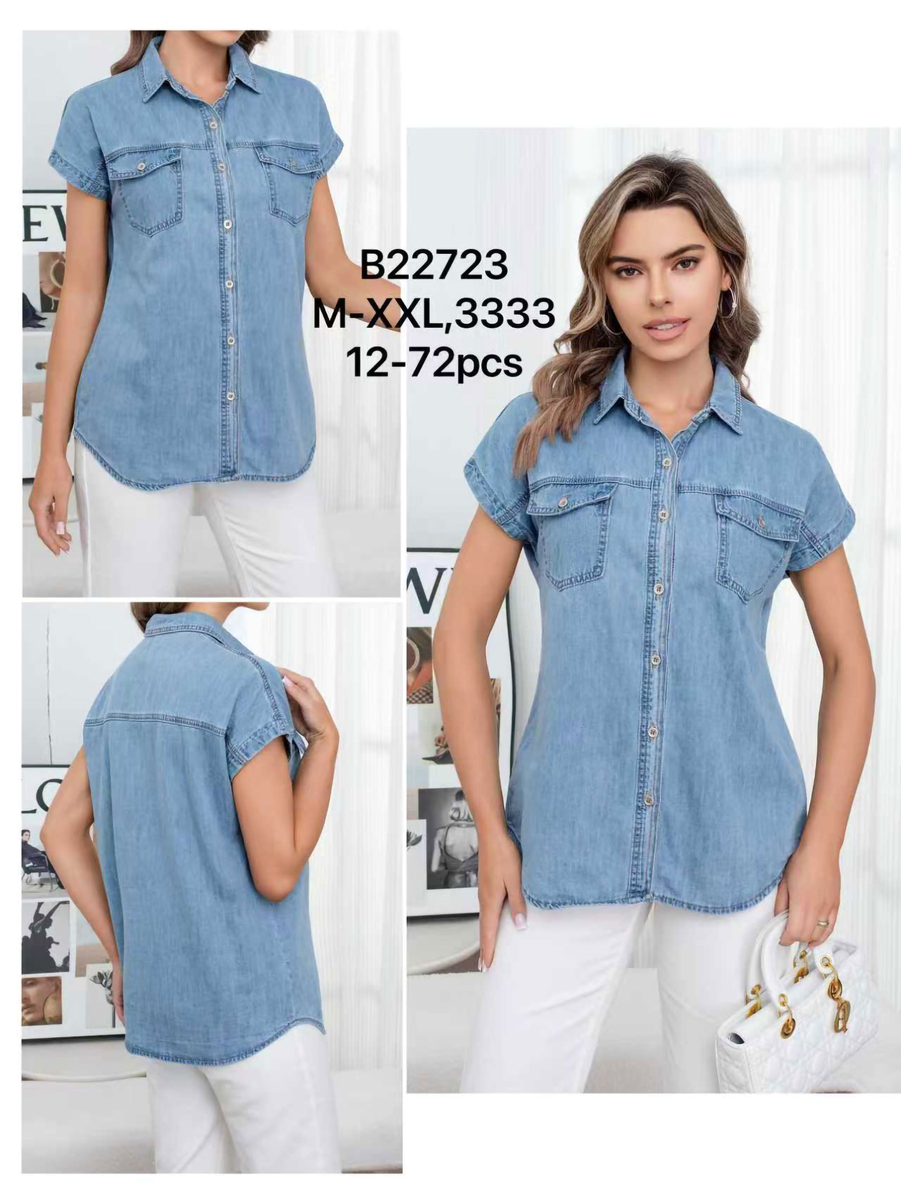 Camisa vaquera. Cuello solapa. Manga corta vuelta. Bolsillos delanteros con tapeta. Cierre mediante botones. Bajo redondeado. Tejido no elástico.