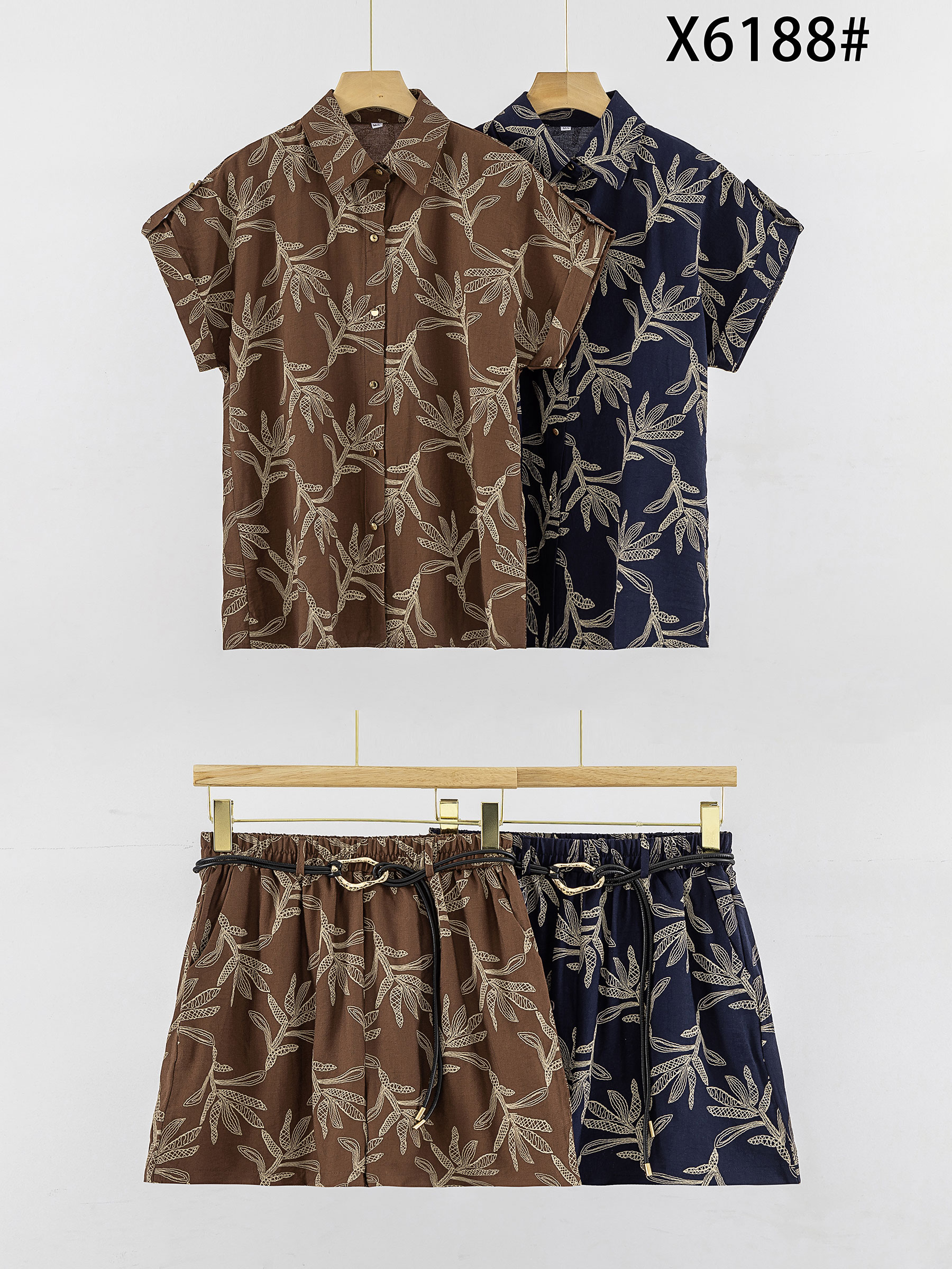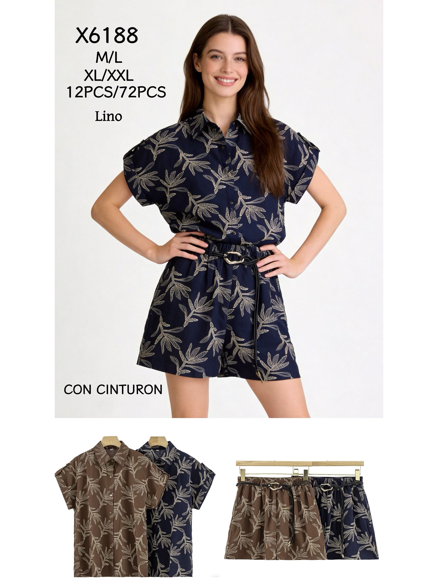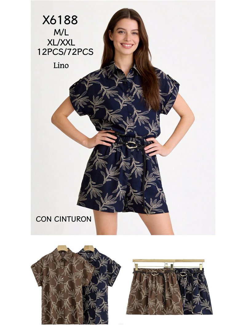 Conjunto camisa estampado hojas y short con cinturón