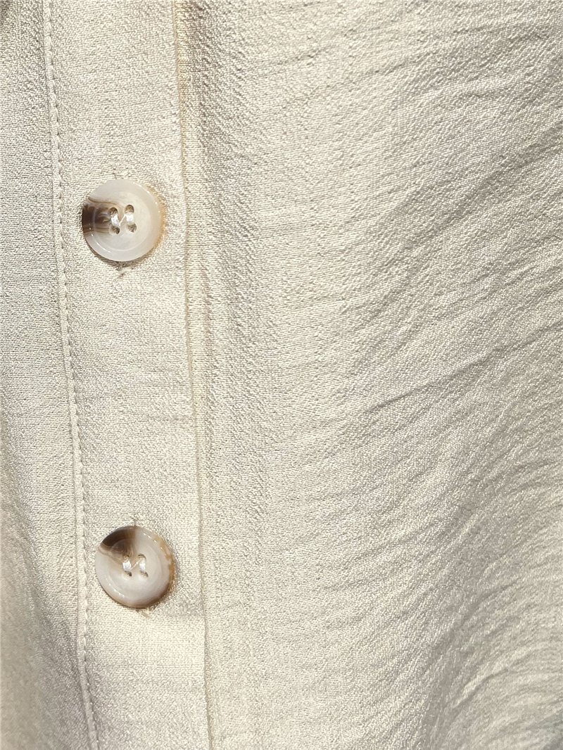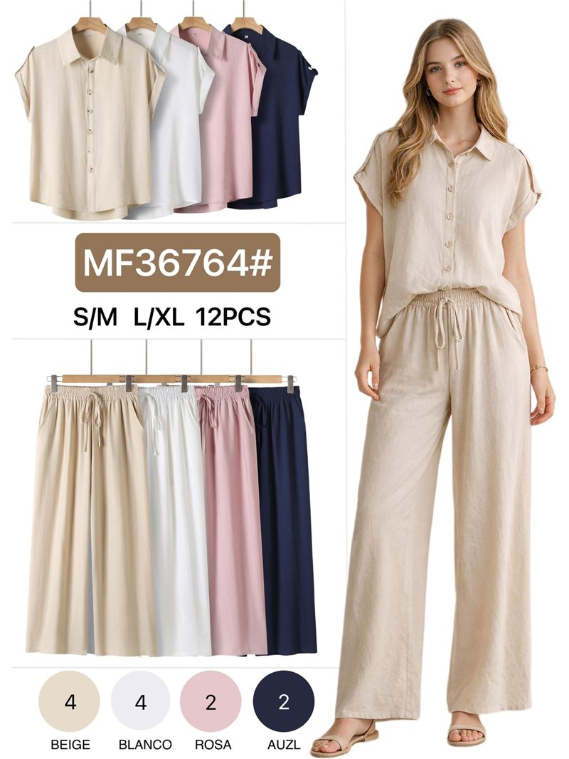 Conjunto de dos piezas. Camisa sin mangas con hombro caído. Cuello camisero. Cierre mediante botones. Pantalón palazzo. Cintura elástica con cordón. Bolsillos laterales.