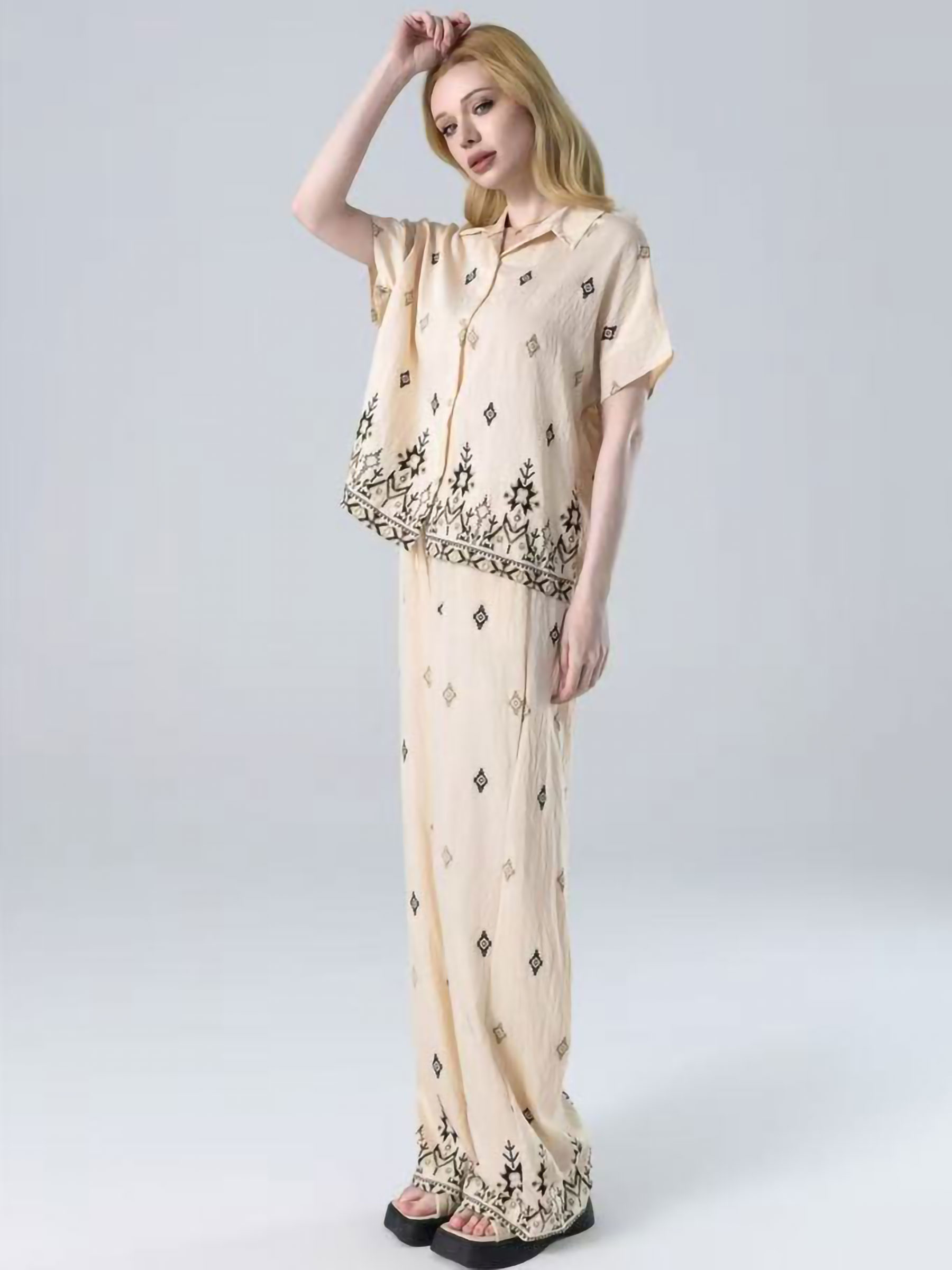 Conjunto camisa estampada con pantalón wide-leg
