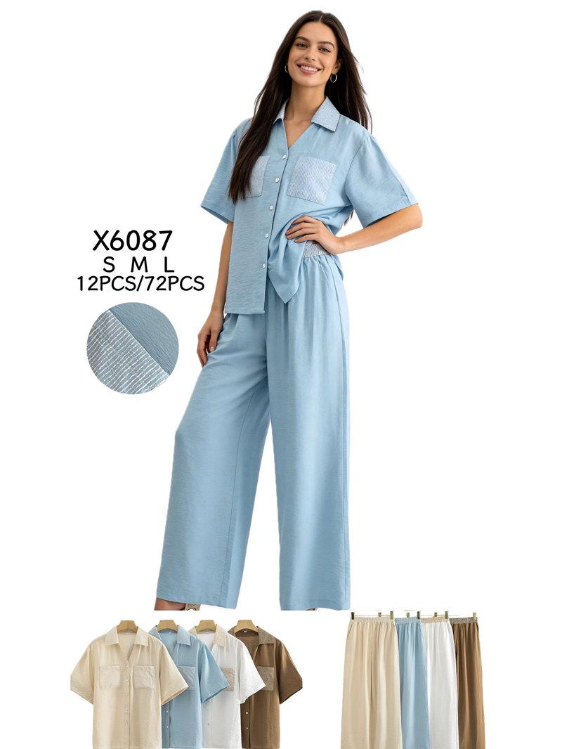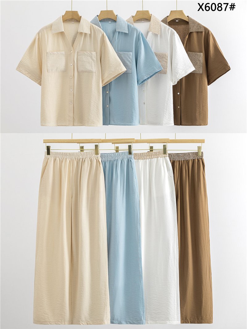 Conjunto camisa bolsillo rayas y pantalón palazzo