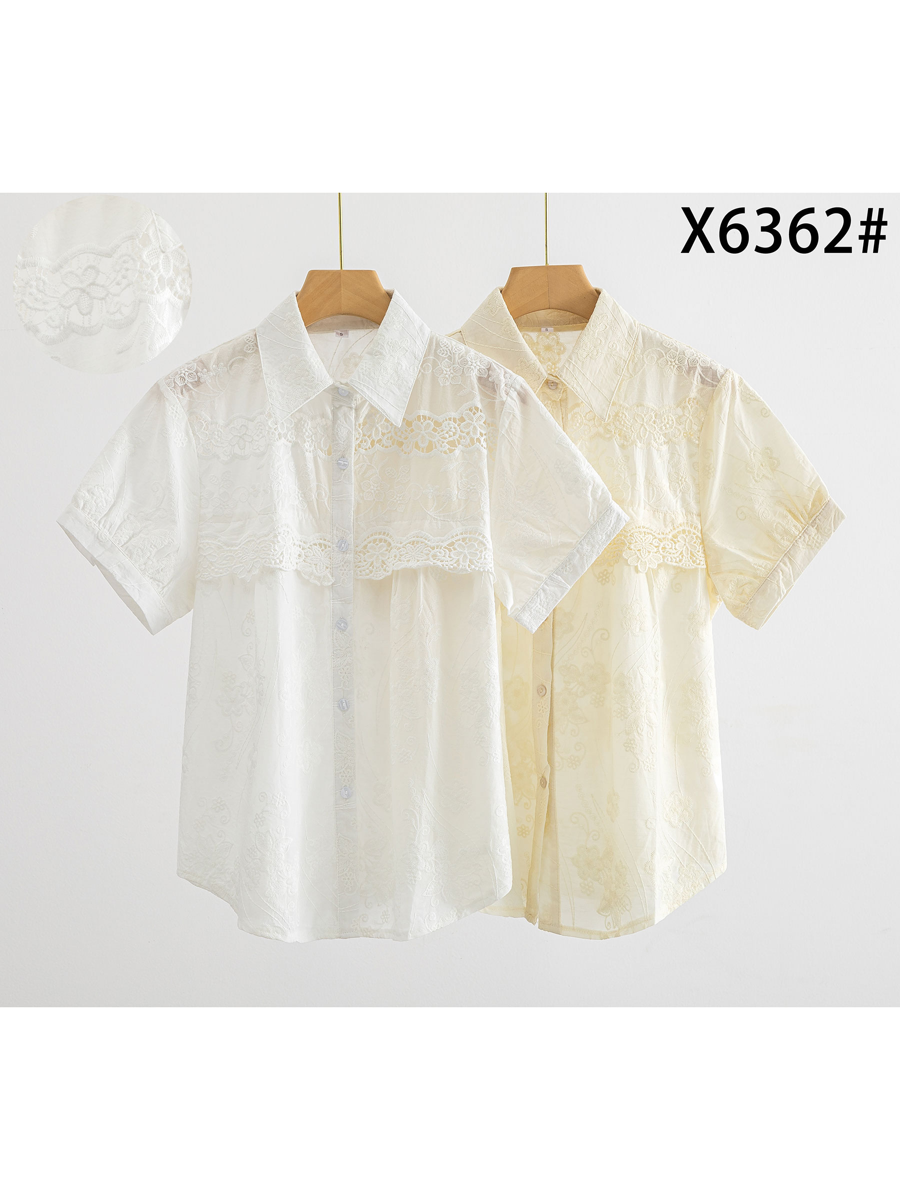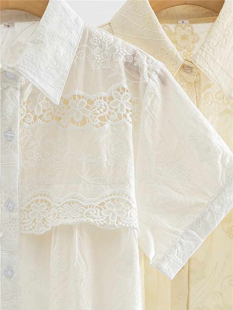 Camisa bordada con canesú de encaje