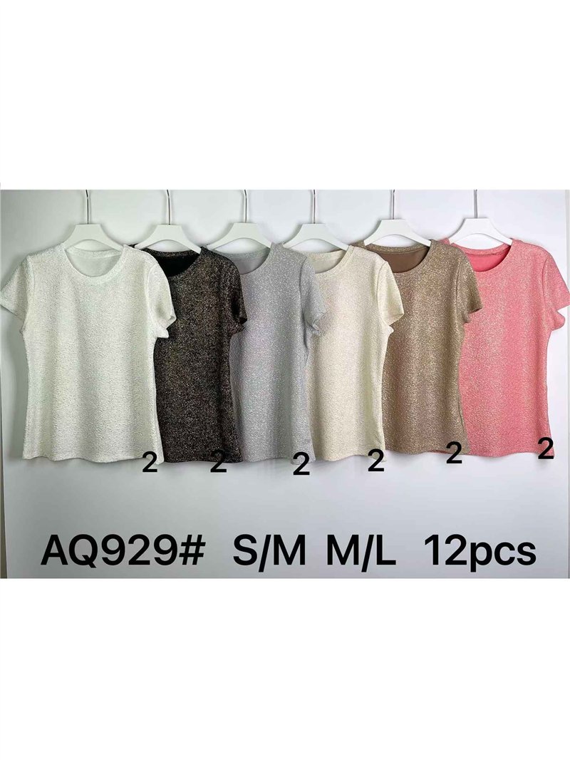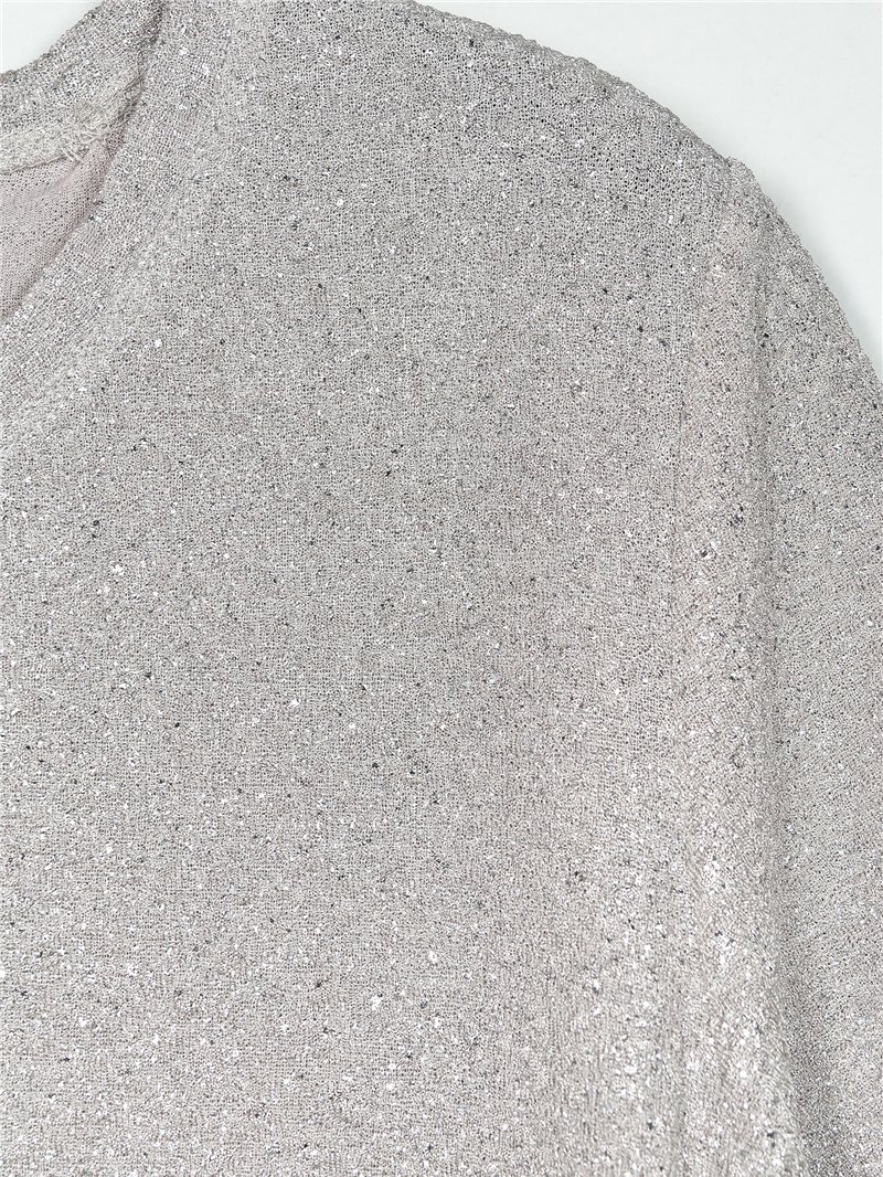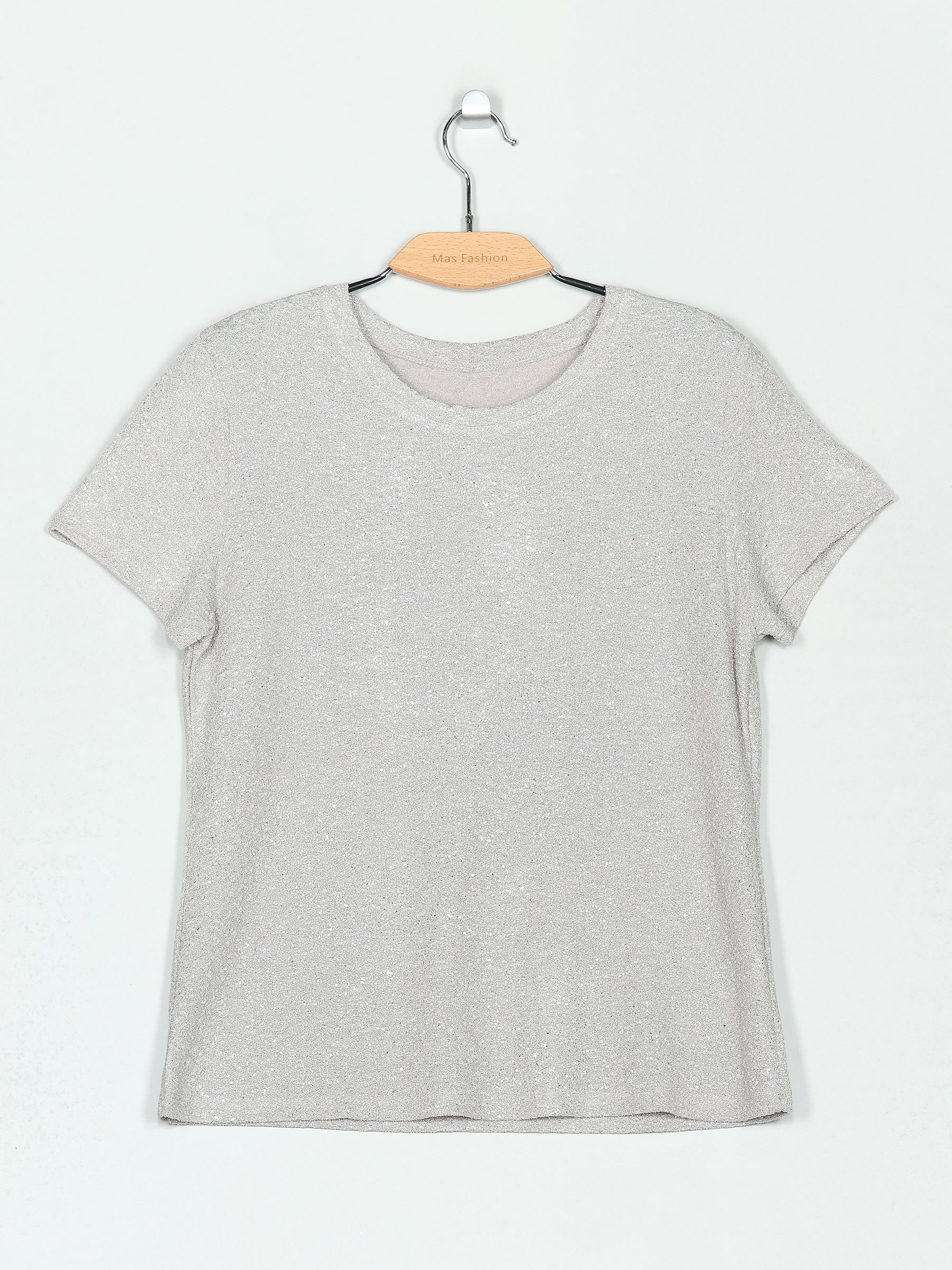 Camiseta metalizada. Cuello redondo. Manga corta. Tejido elástico.