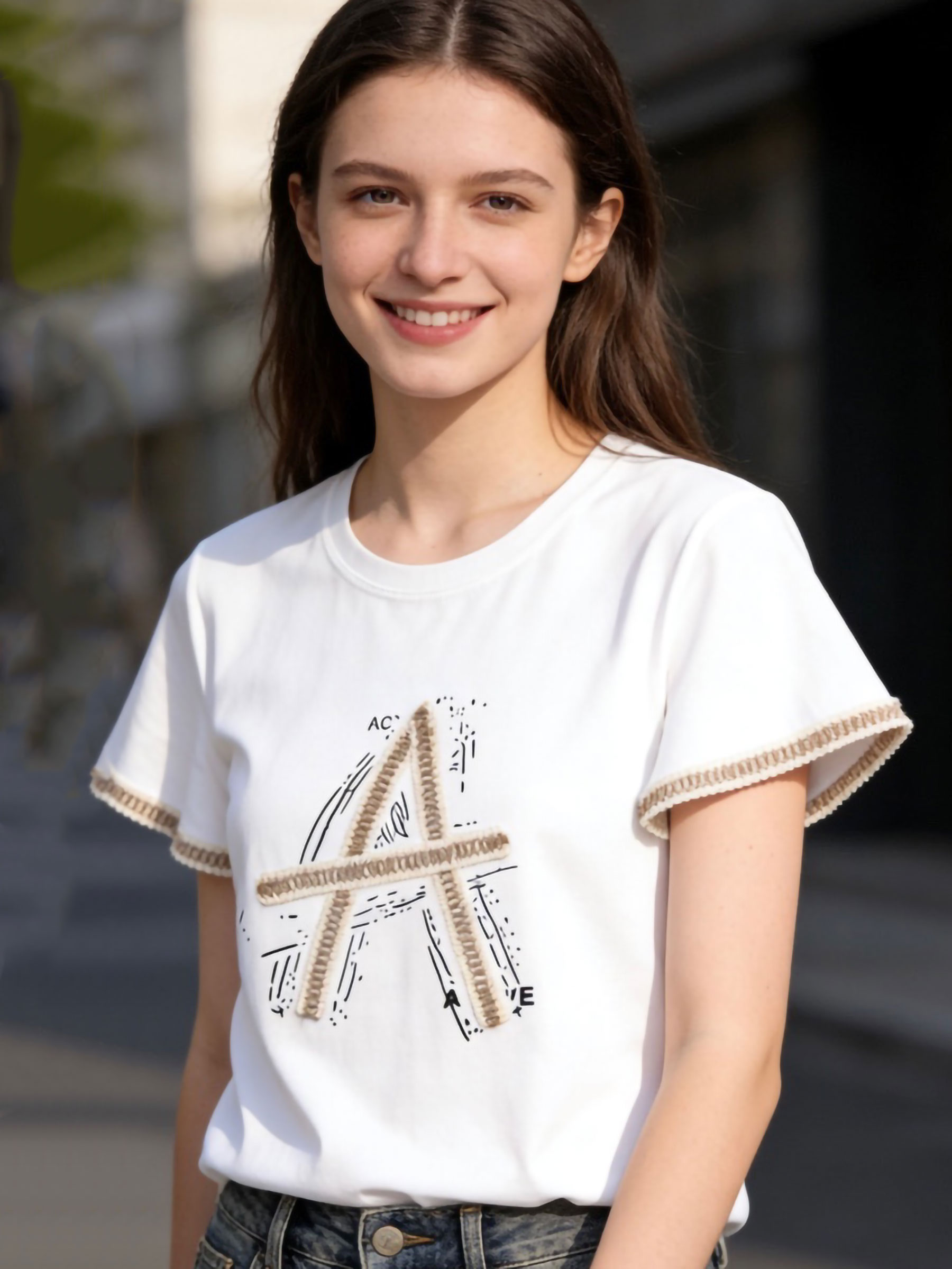 Camiseta letra A y manga volante