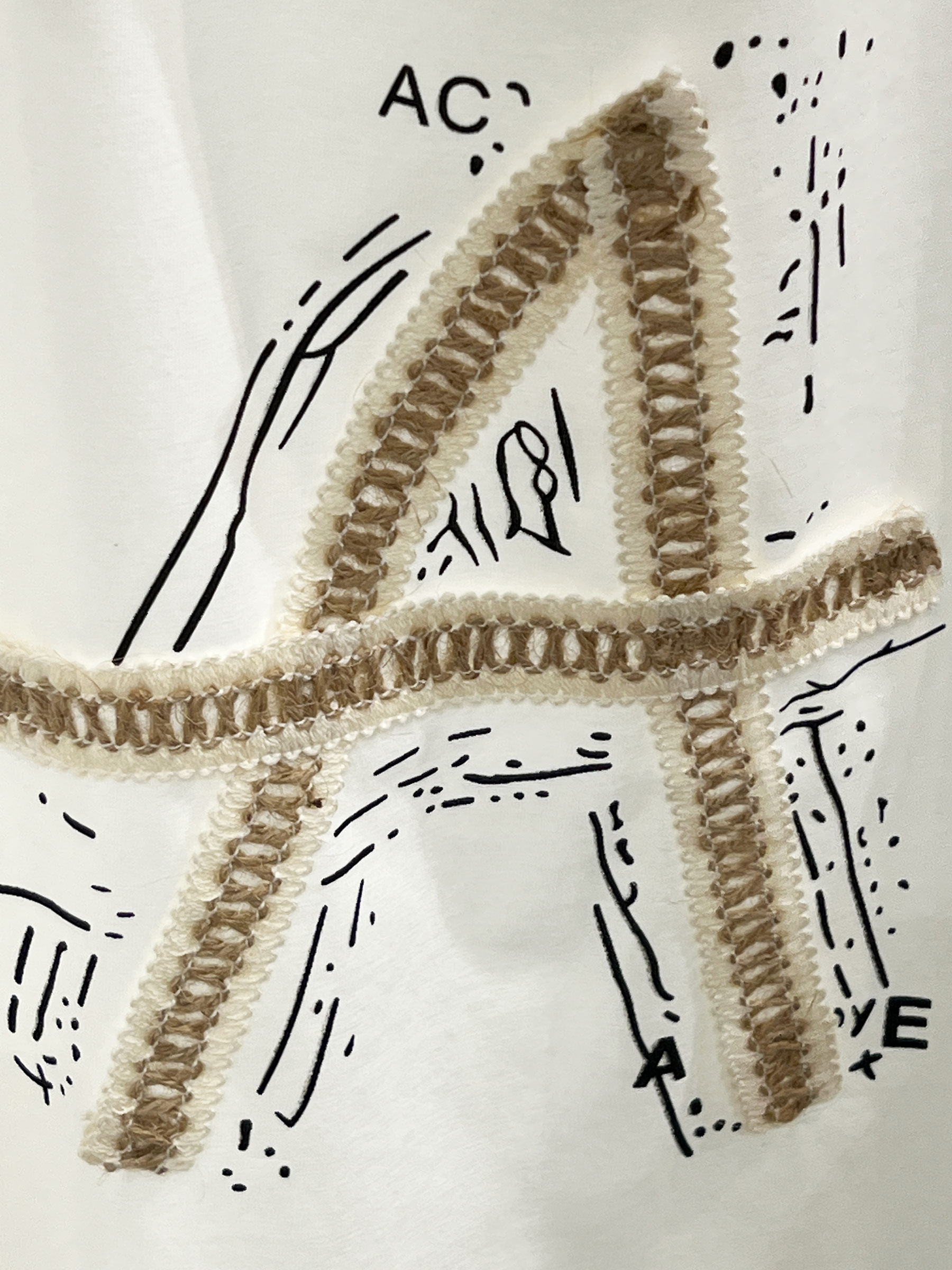 Camiseta con aplique de letra A en relieve. Manga volante con ribete decorativo a contraste. Cuello redondo. Tejido elástico.