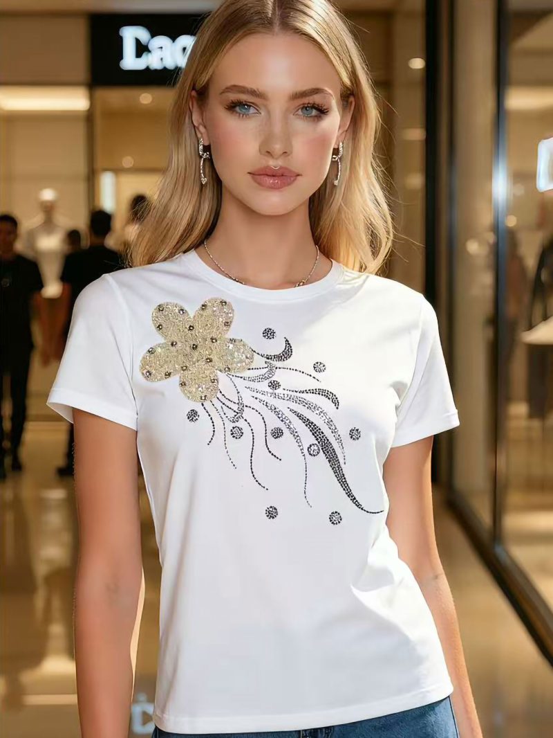 Camiseta flor de lentejuelas y strass