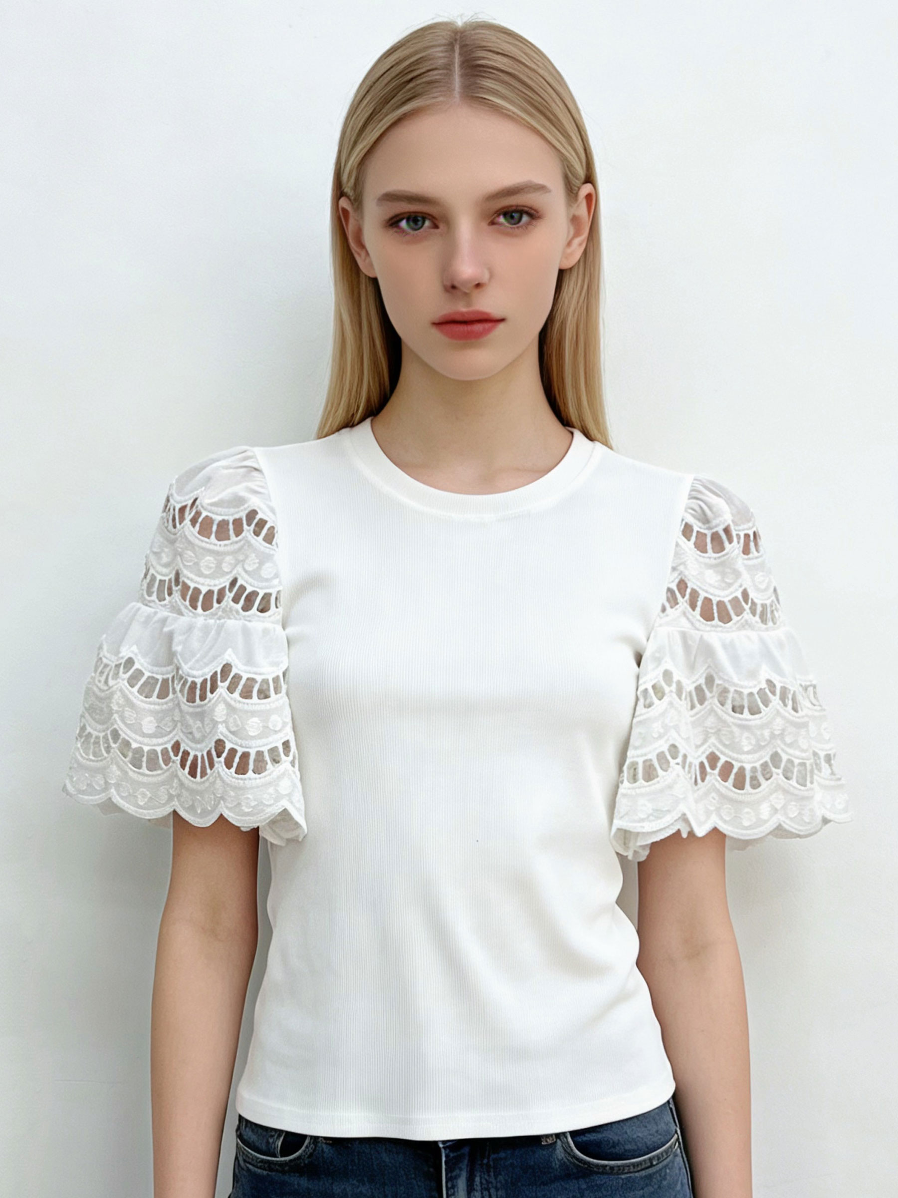 Camiseta mangas de encaje en capas