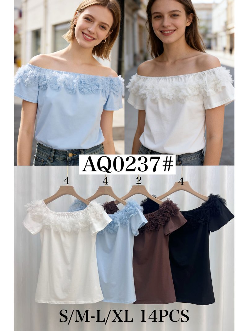 Camiseta hombros descubiertos flores 3d