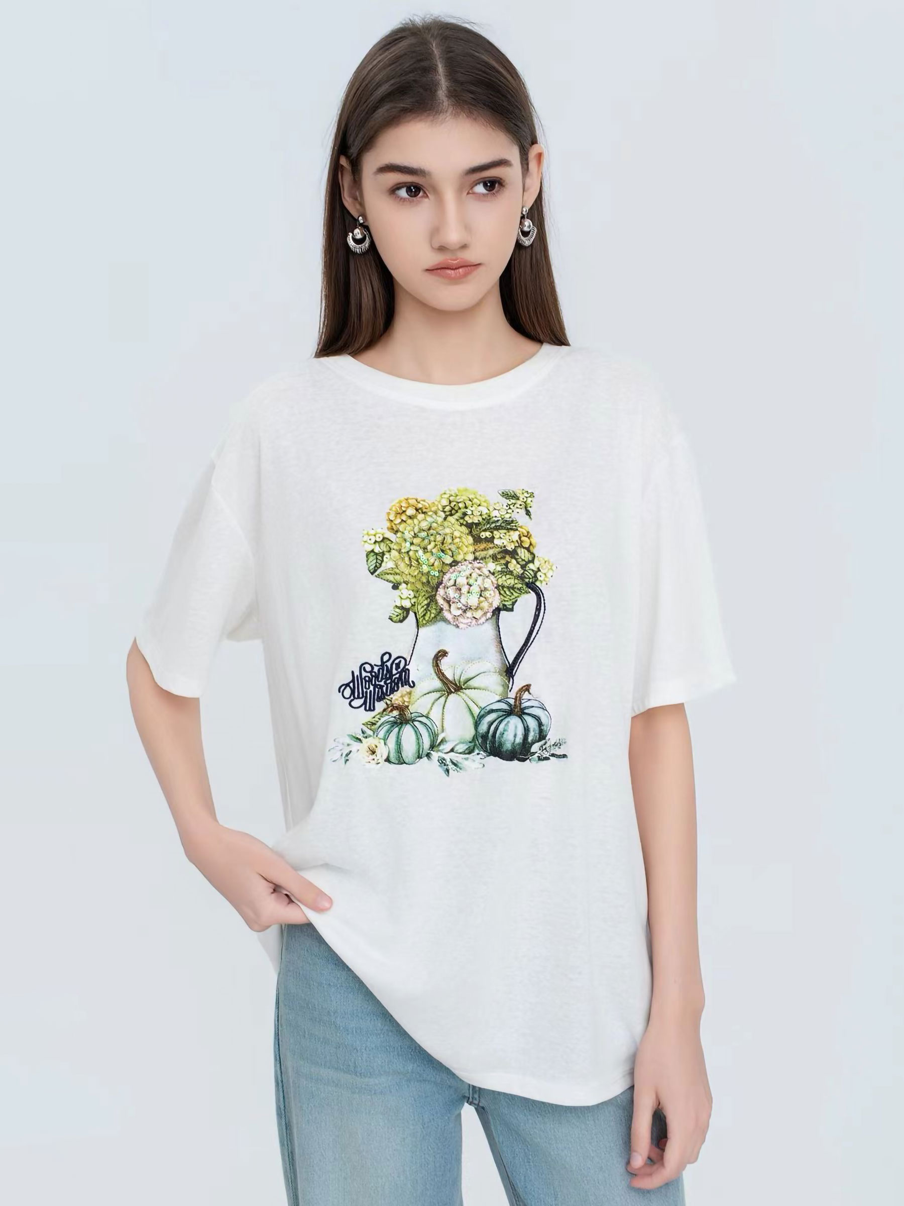 Camiseta oversize estampada jarrón floral