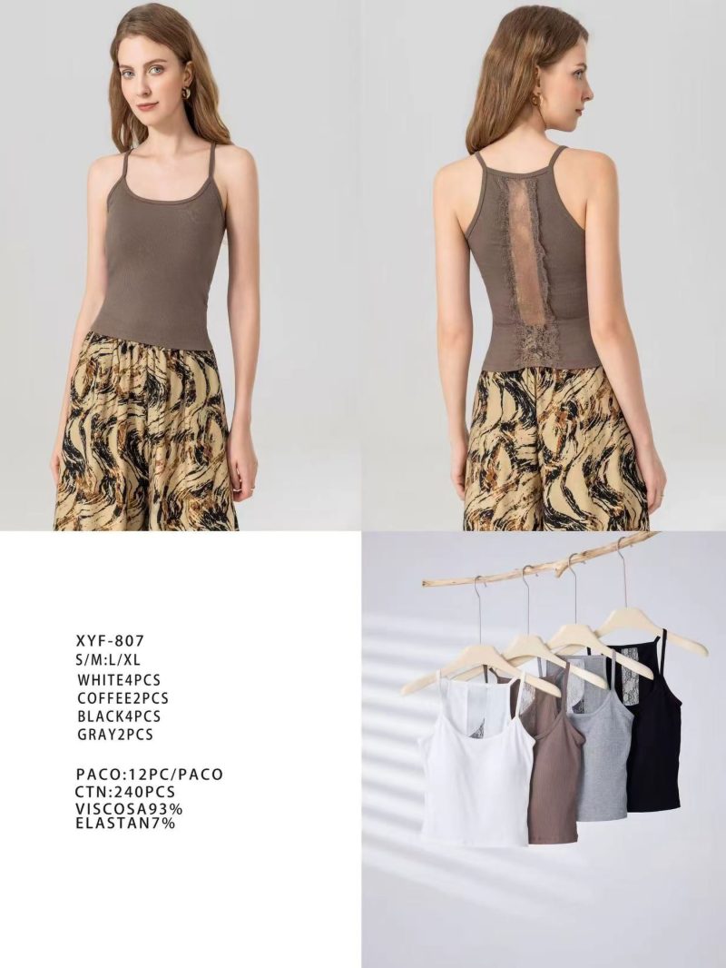 Camiseta de tirantes canalé espalda de encaje