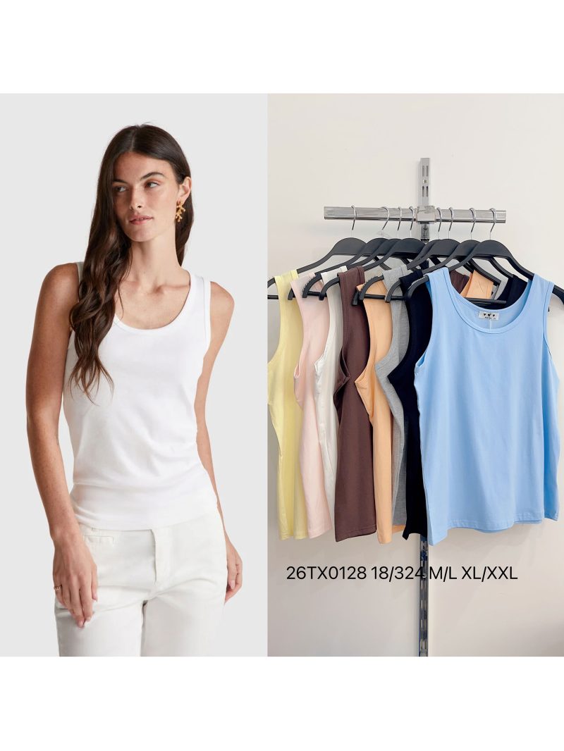Mín. 12 Camisetas Top de tirantes canalé de escote cuadrado LS-XZM6062 Talla: S/M-L/XL.Colección: Primavera/Verano 2026 Ver precio