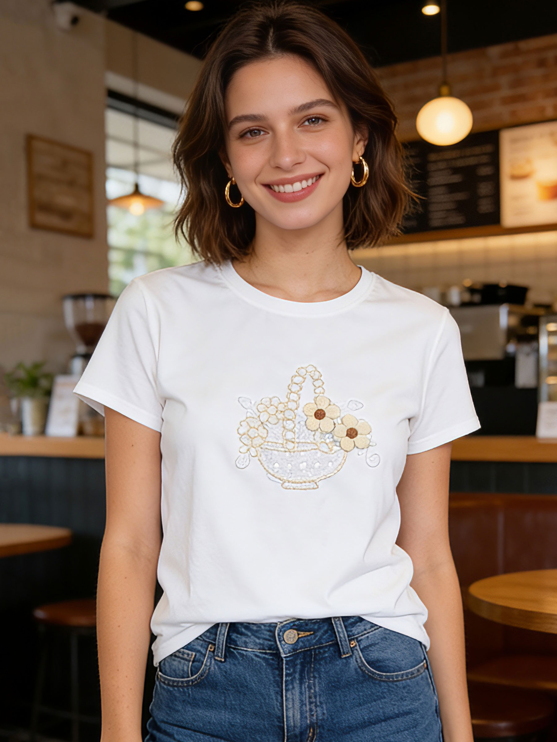 Nuevo Mín. 6 Camisetas Camiseta flores bordada con strass MF-AQ0377 Talla: M/L-XL/XXLColección: Primavera/Verano 2026. Ver precio
