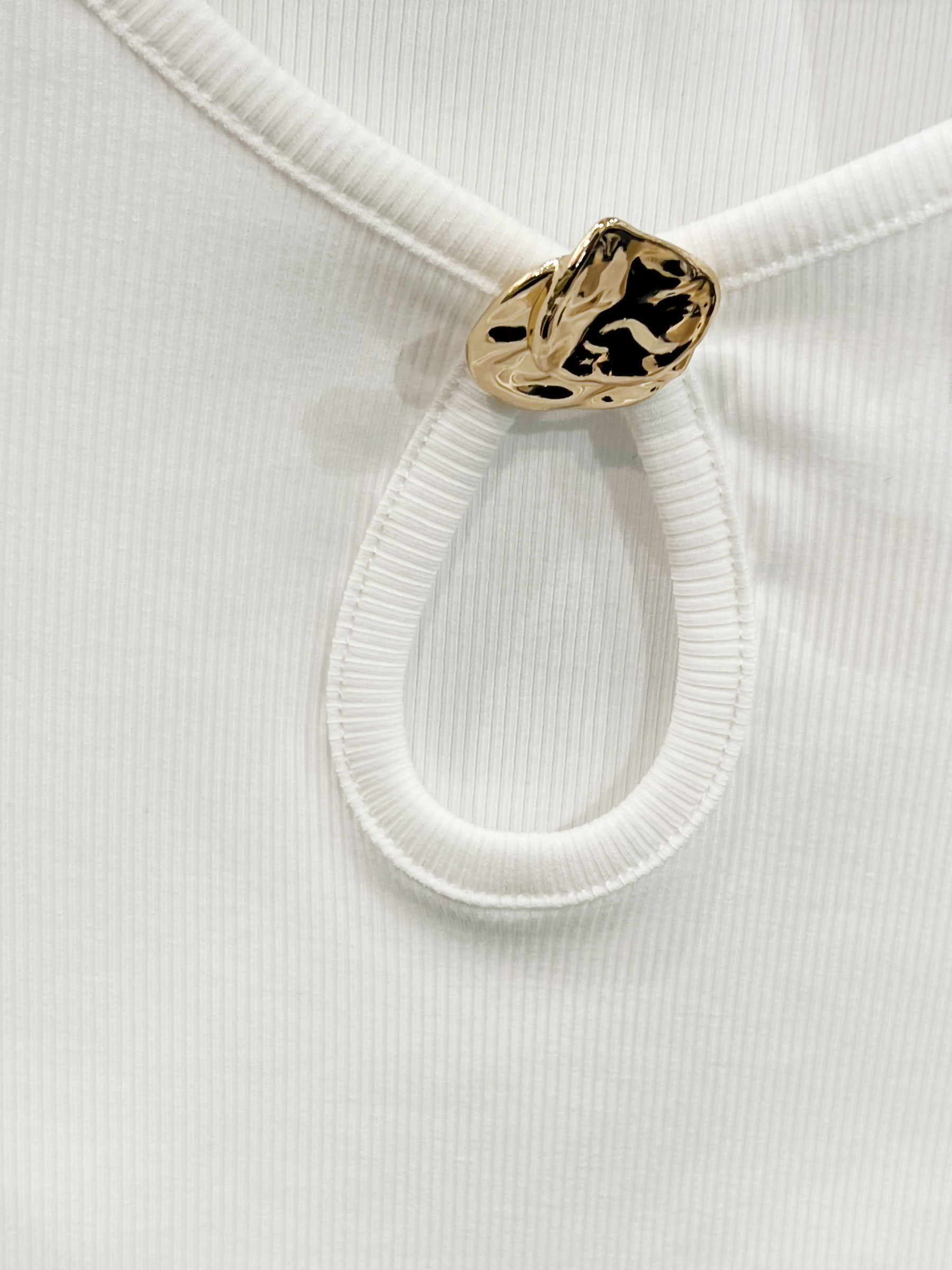 Camiseta canalé escote lágrima y aplique metálico