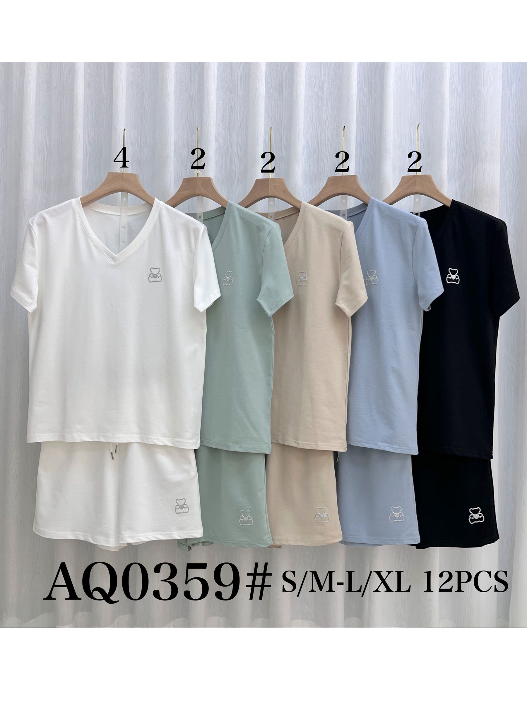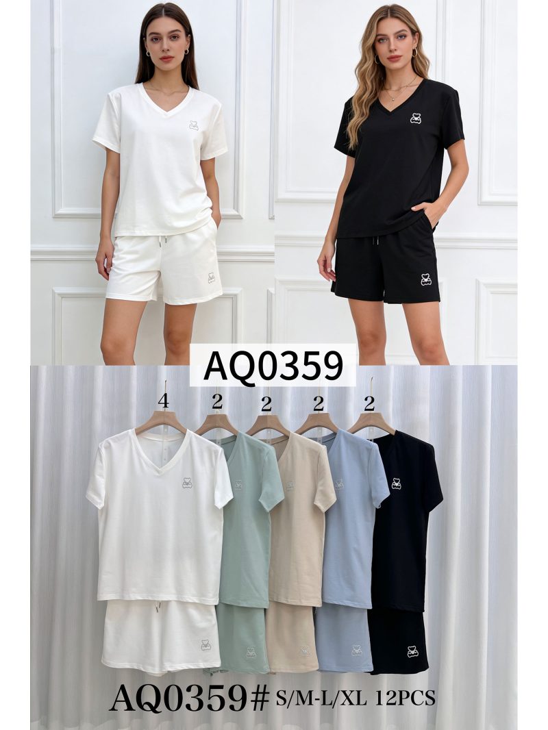 Conjunto de dos piezas. Camiseta cuello pico. Manga corta. Detalle osito con glitter. Short con cintura elástica. Cordón ajustable. Bolsillos laterales.