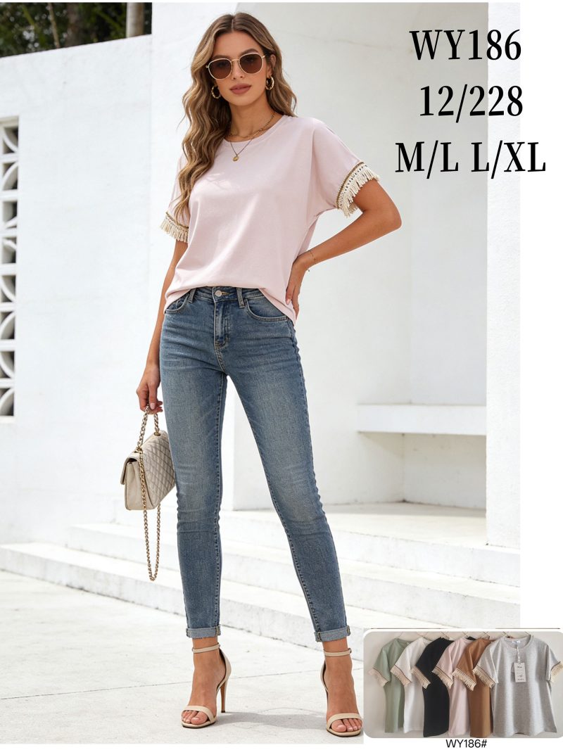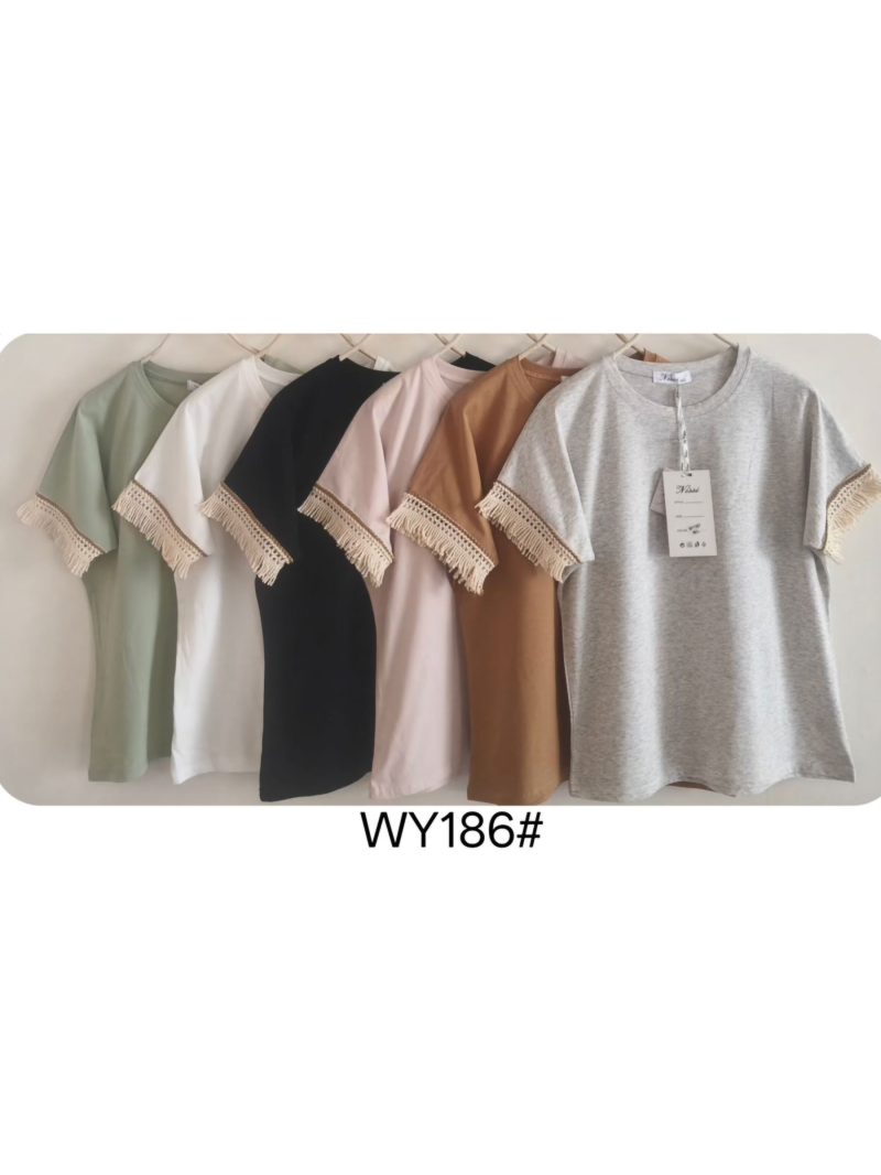 Camiseta lisa flecos en mangas