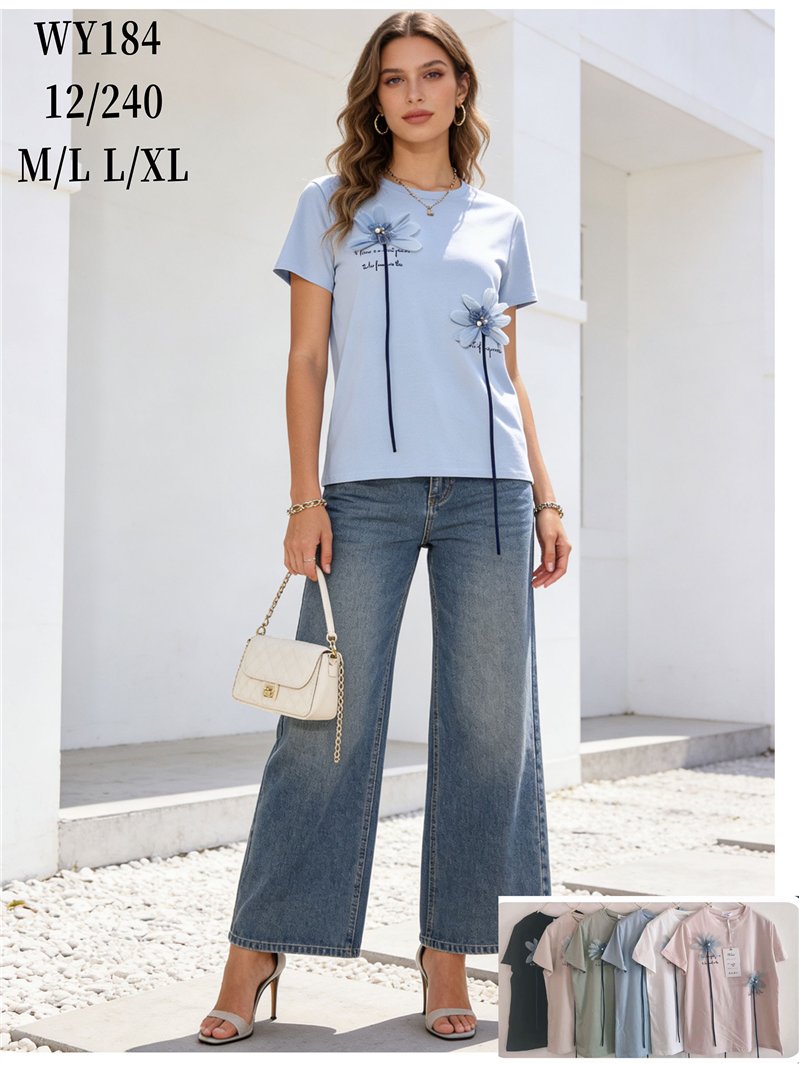Camiseta con flores 3d en relieve