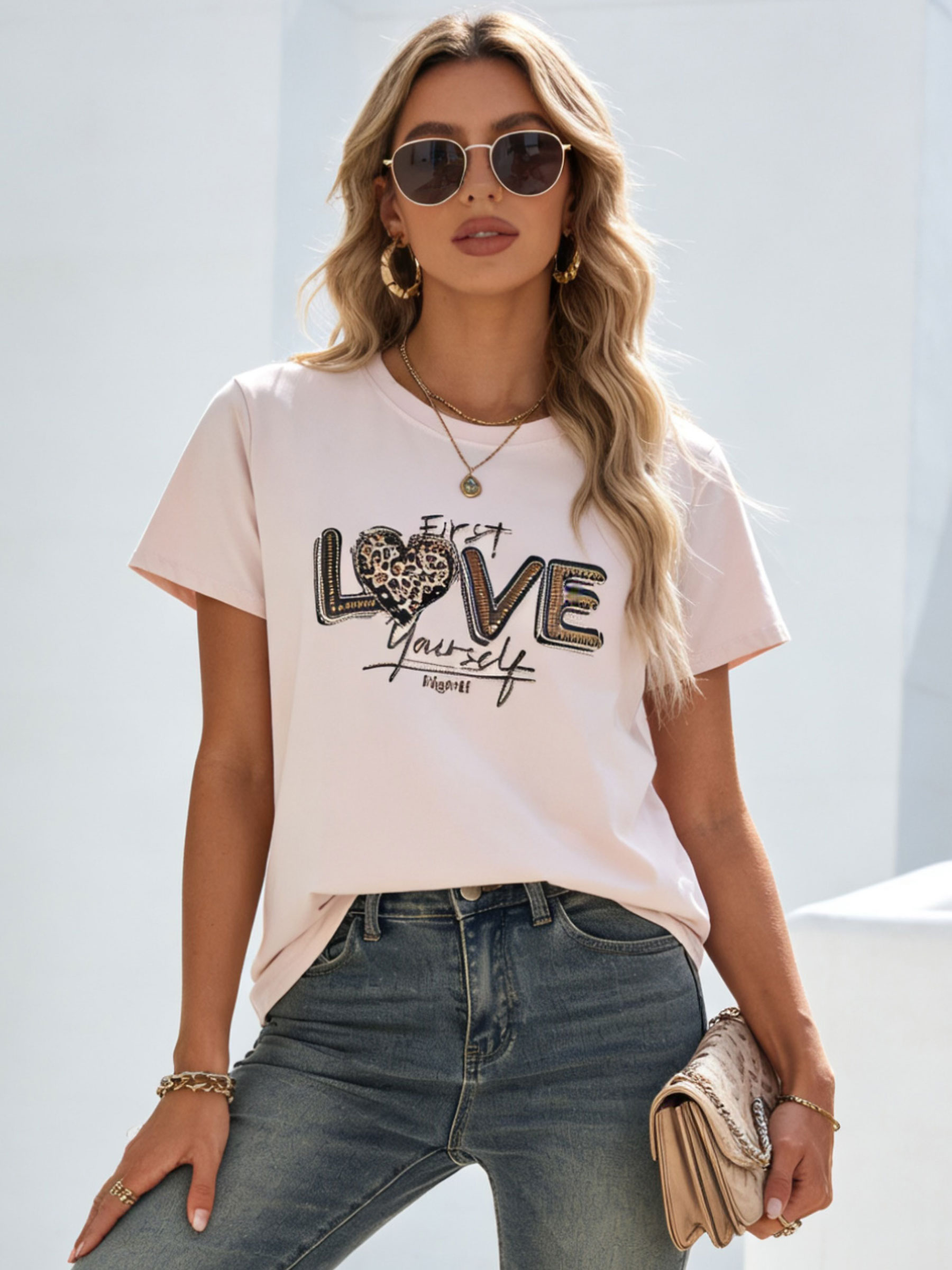 Camiseta love con print animal