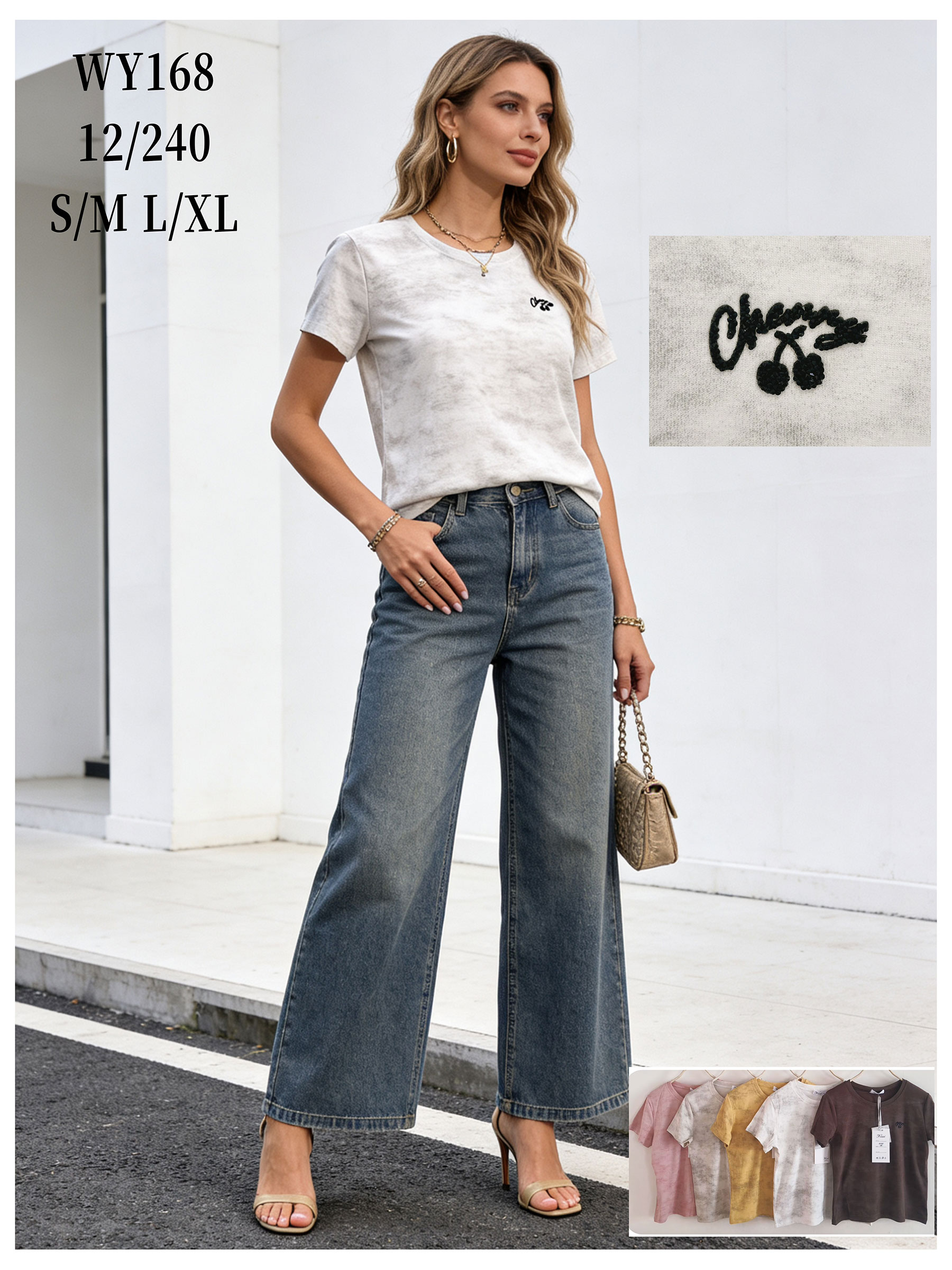 Camiseta efecto lavado con bordado de cerezas