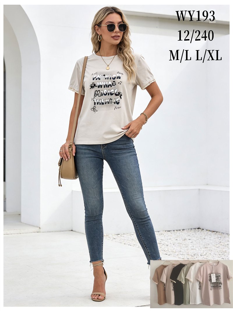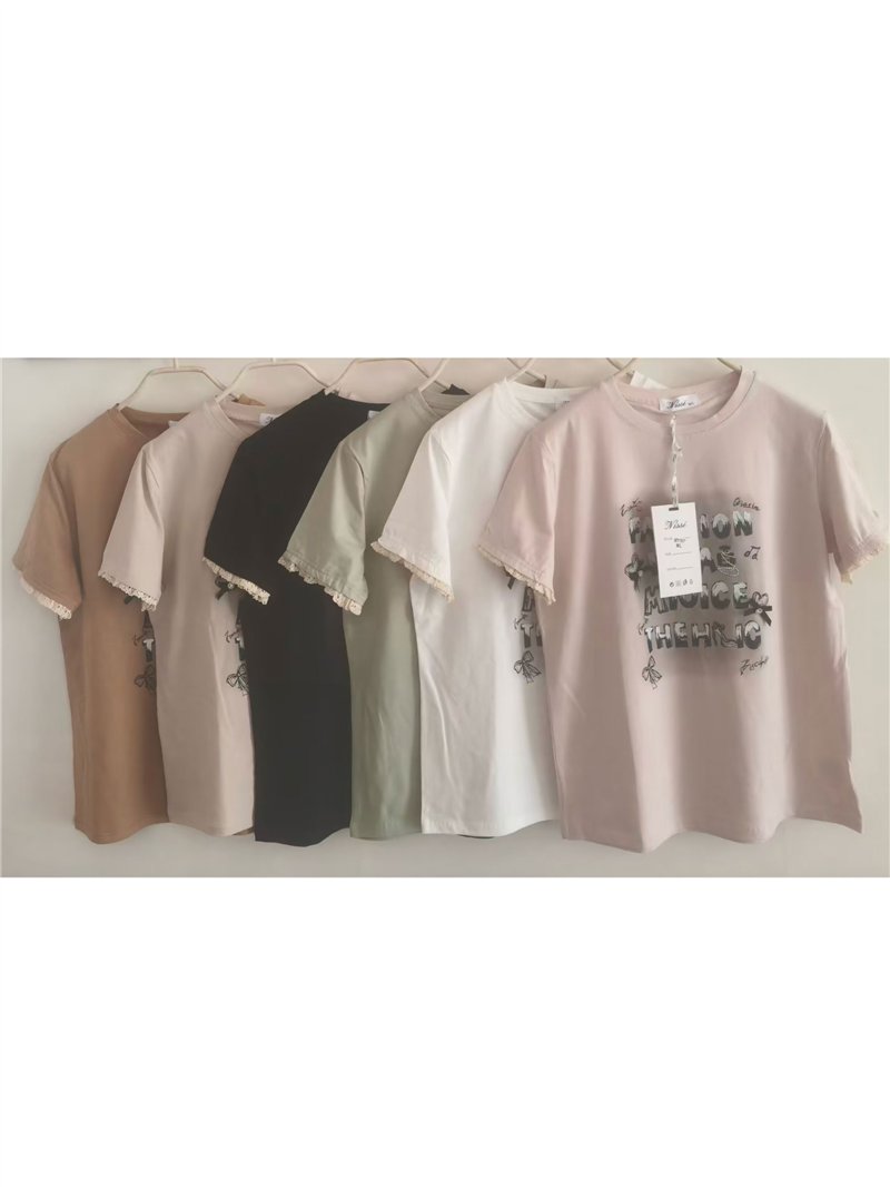 Camiseta con mensaje y manga con encaje