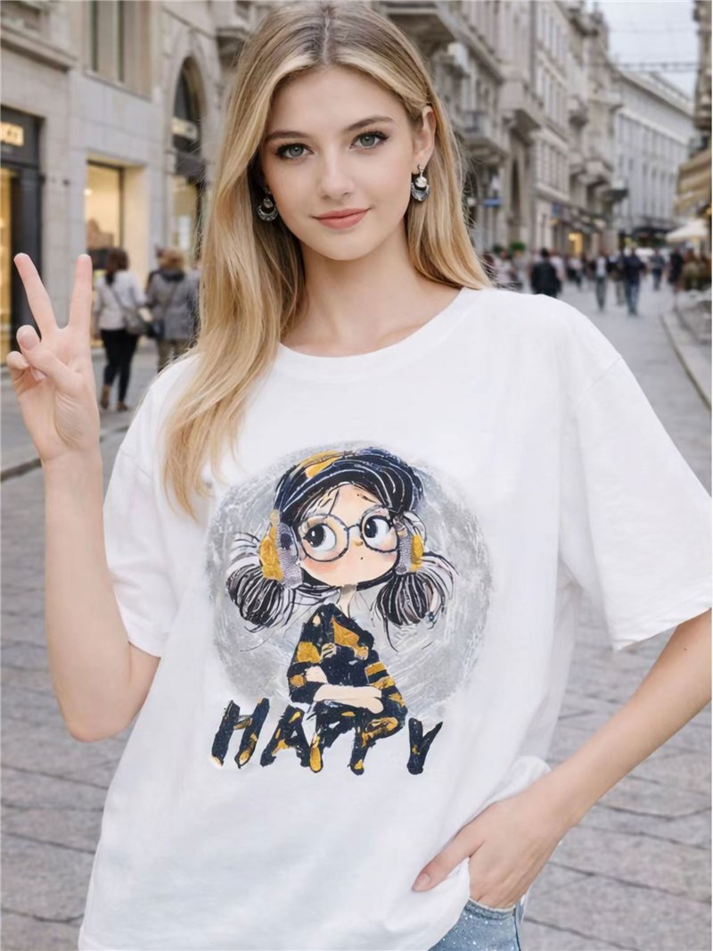 Camiseta girl happy con strass