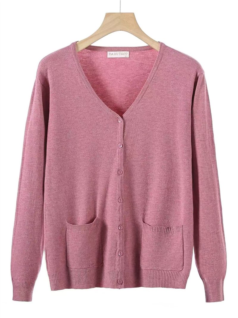 Chaqueta punto básica bolsillos cuello pico talla grande