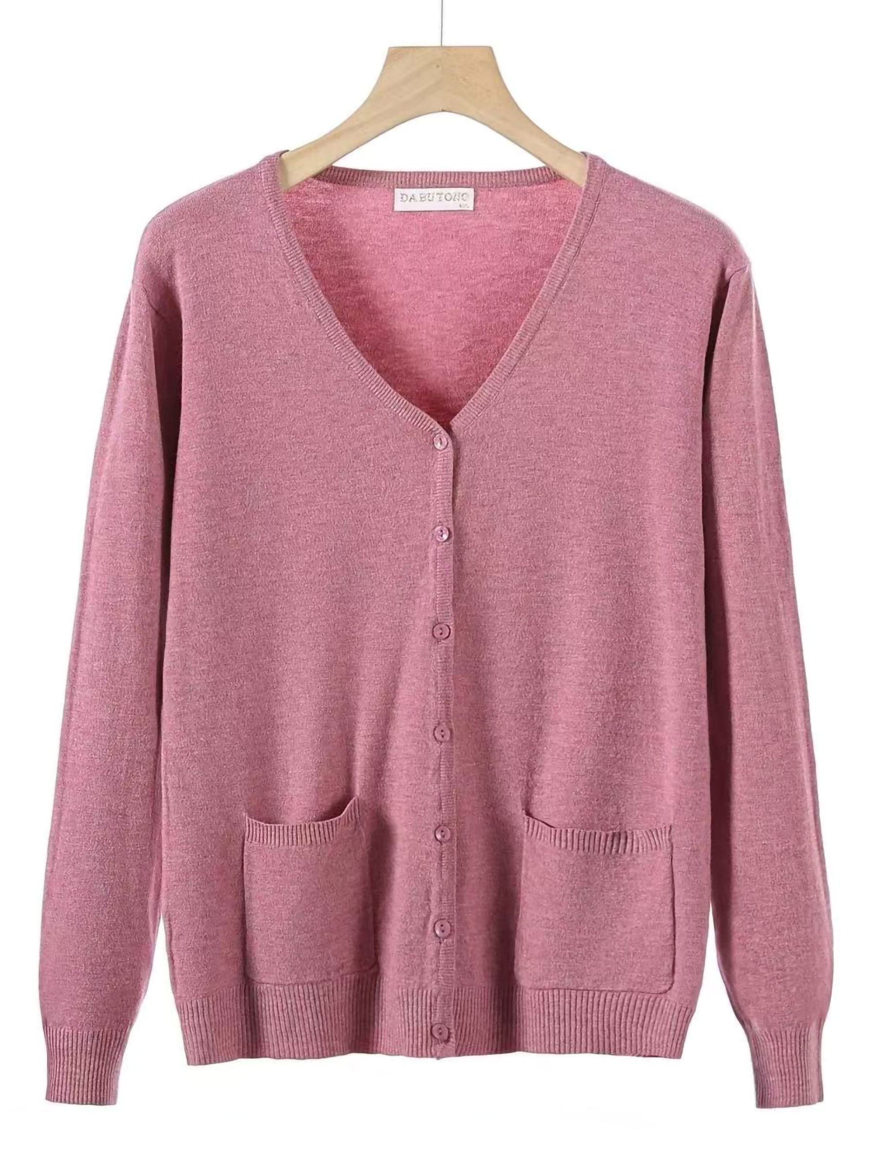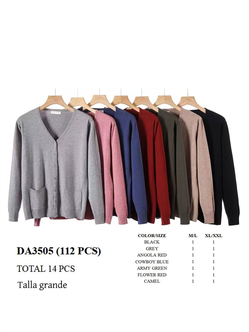 Detalles de chaqueta punto básica bolsillos cuello pico talla grande DB-DA3505