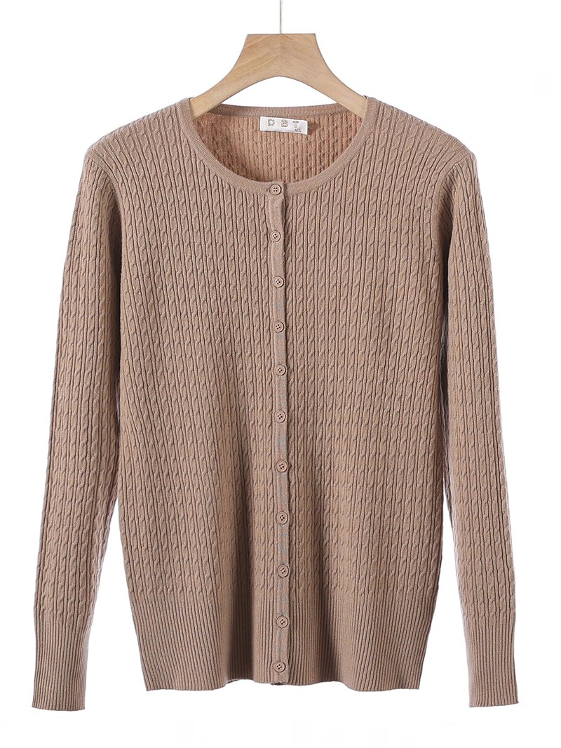 Chaqueta de punto fino en estructura con diseño trenzado. Tacto suave. Cuello redondo. Manga larga. Cierre mediante botones.