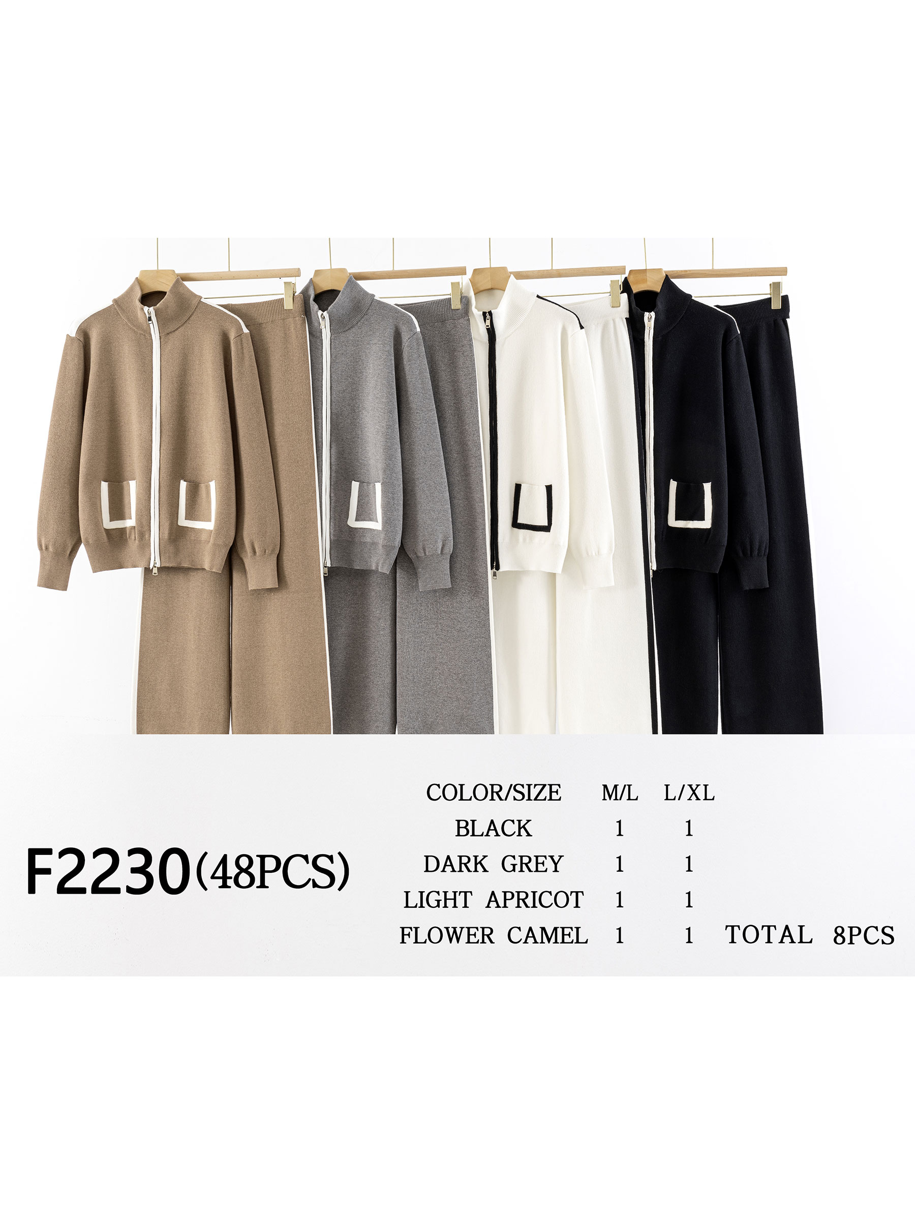 Detalles de conjunto chaqueta punto contraste cuello perkins + pantalón DB-F2230