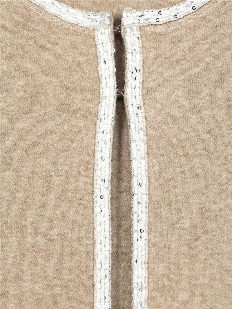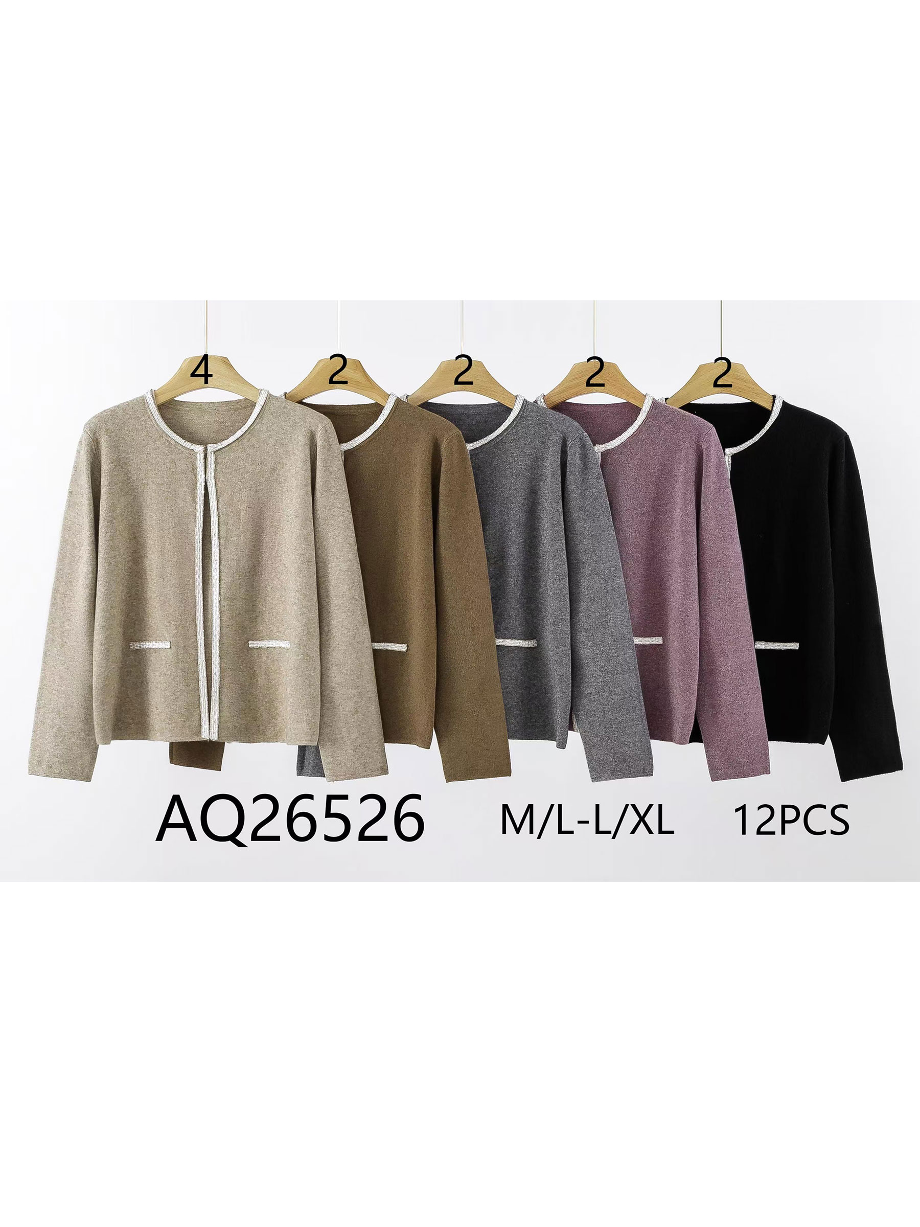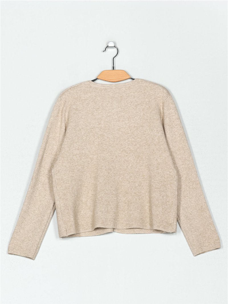 Chaqueta de punto cálido. Tacto suave. Detalle tweed. Cuello redondo. Manga larga. Cierre mediante corchete.