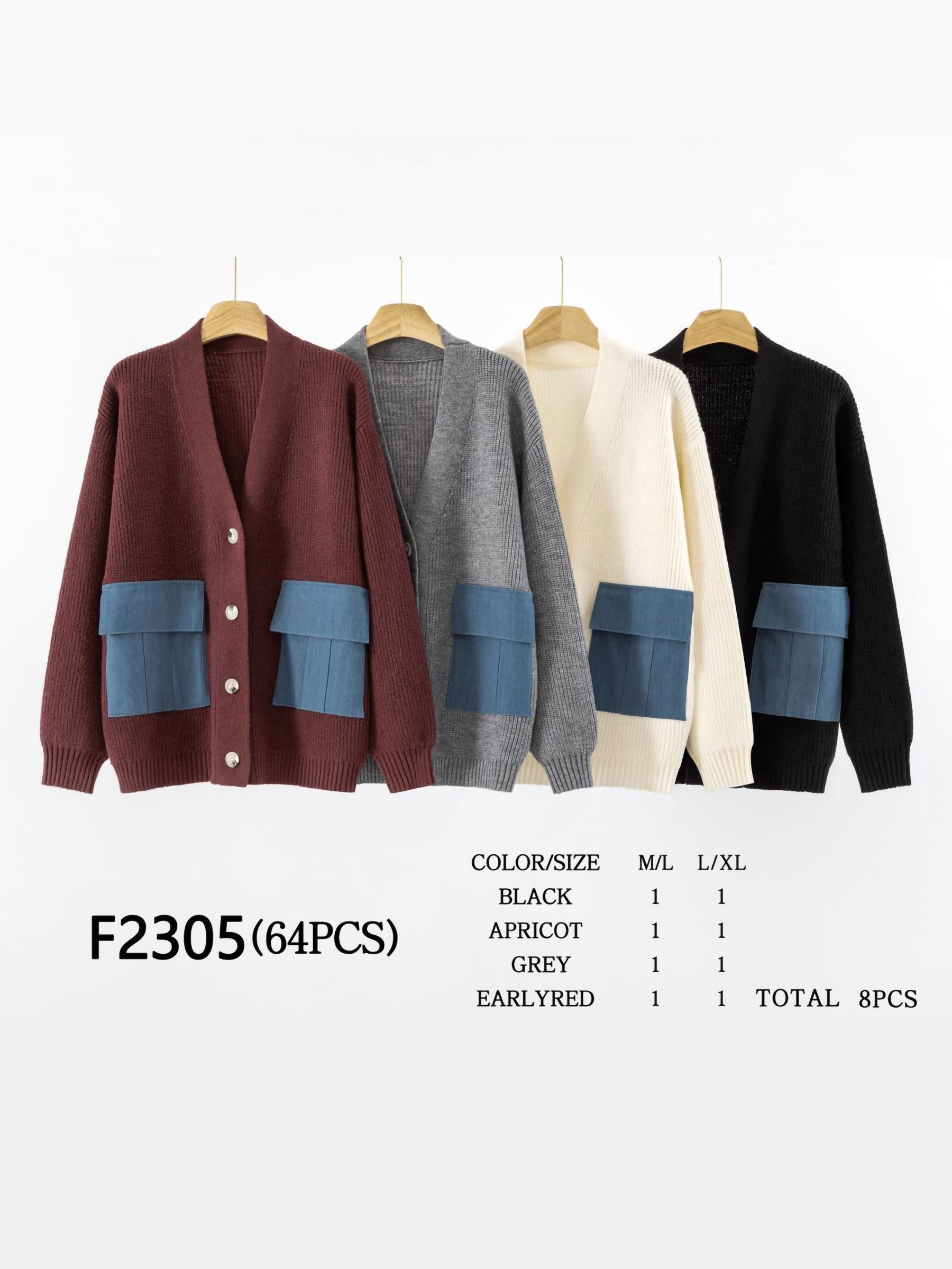 Detalles de chaqueta amplia punto bolsillos denim DB-F2305
