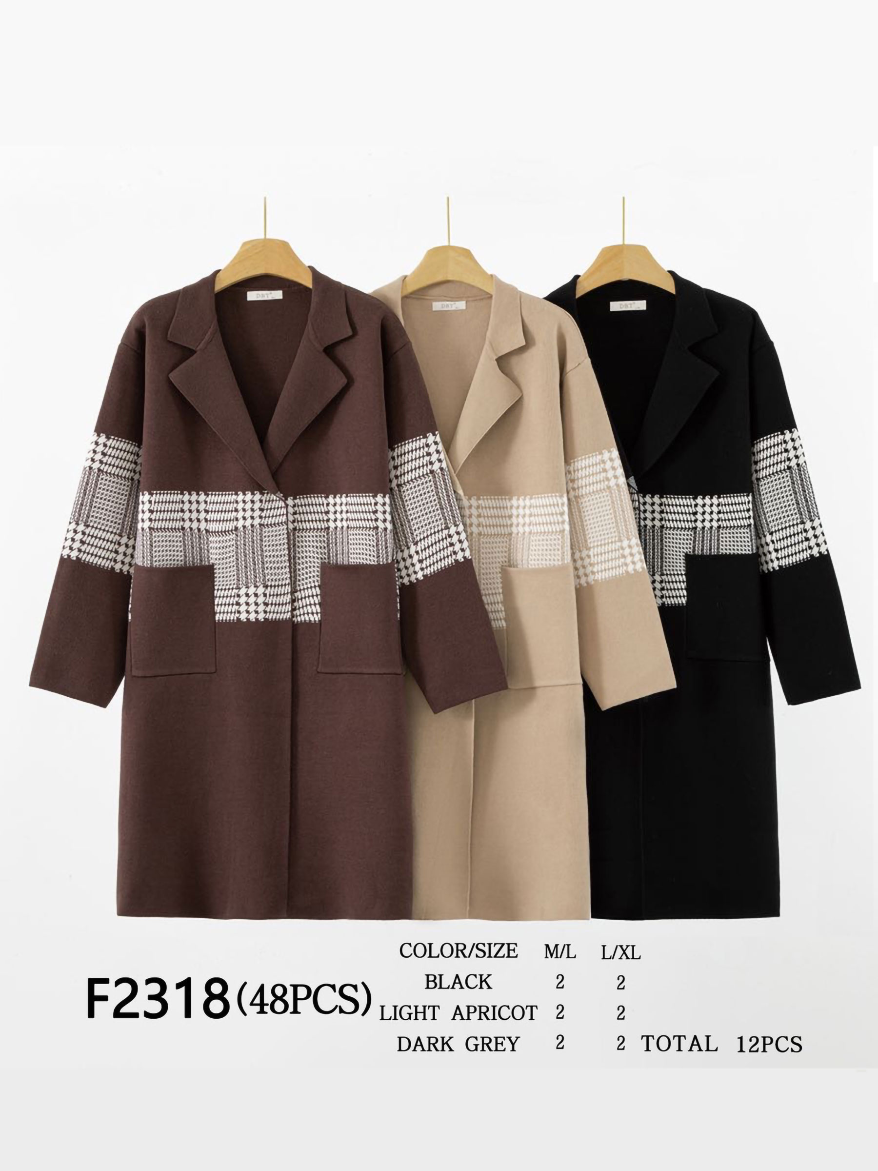 Detalles de abrigo largo punto pata de gallo DB-F2318