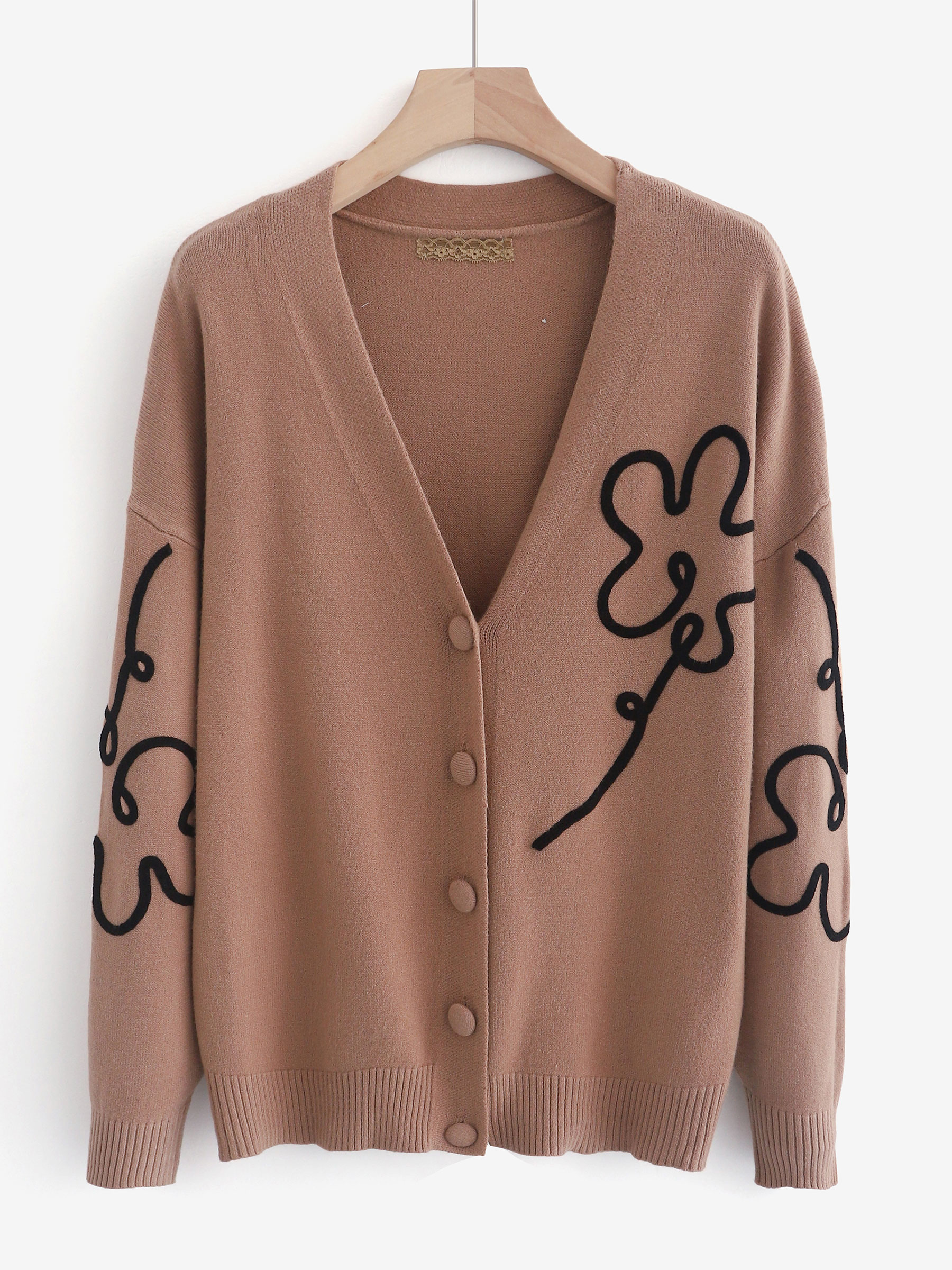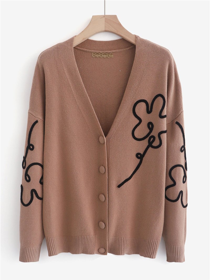 Detalles de chaqueta punto bordado floral relieve ZD-YY2035