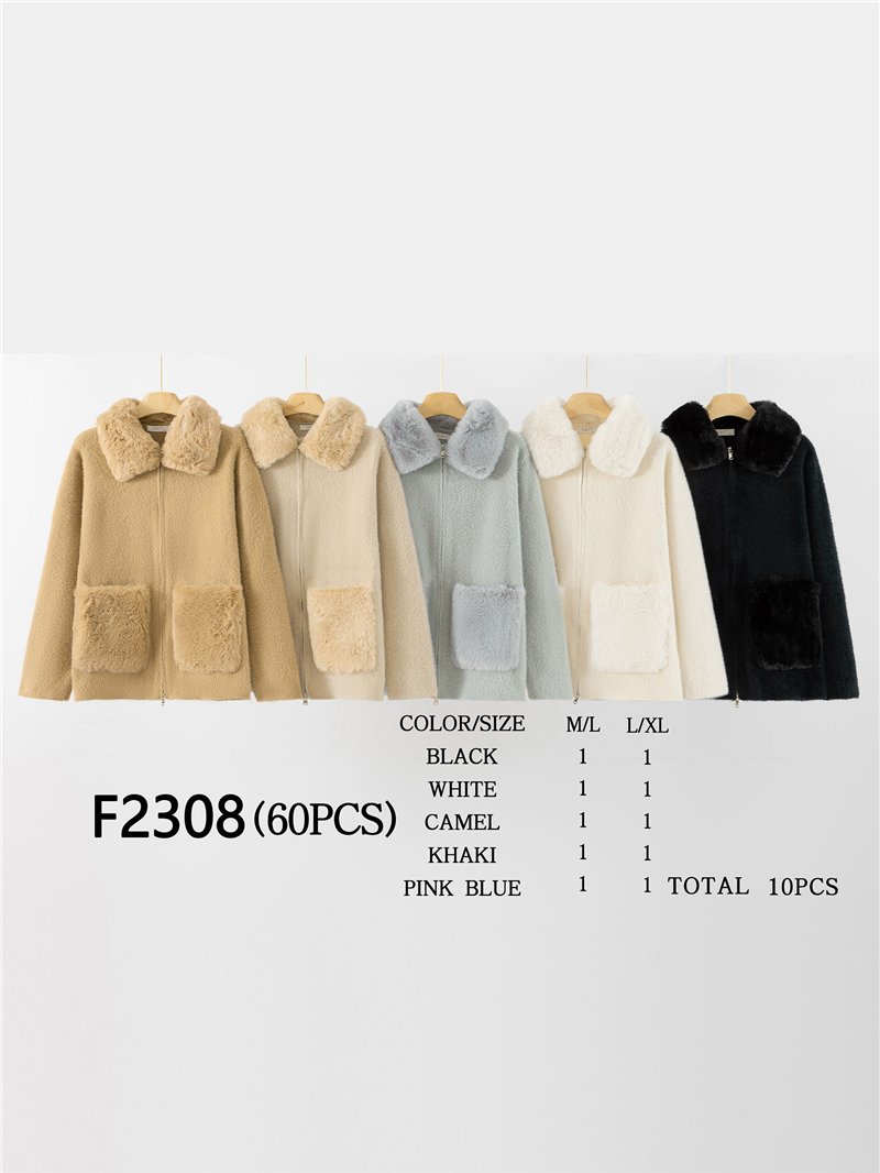 Detalles de chaqueta punto cuello pelo DB-F2308