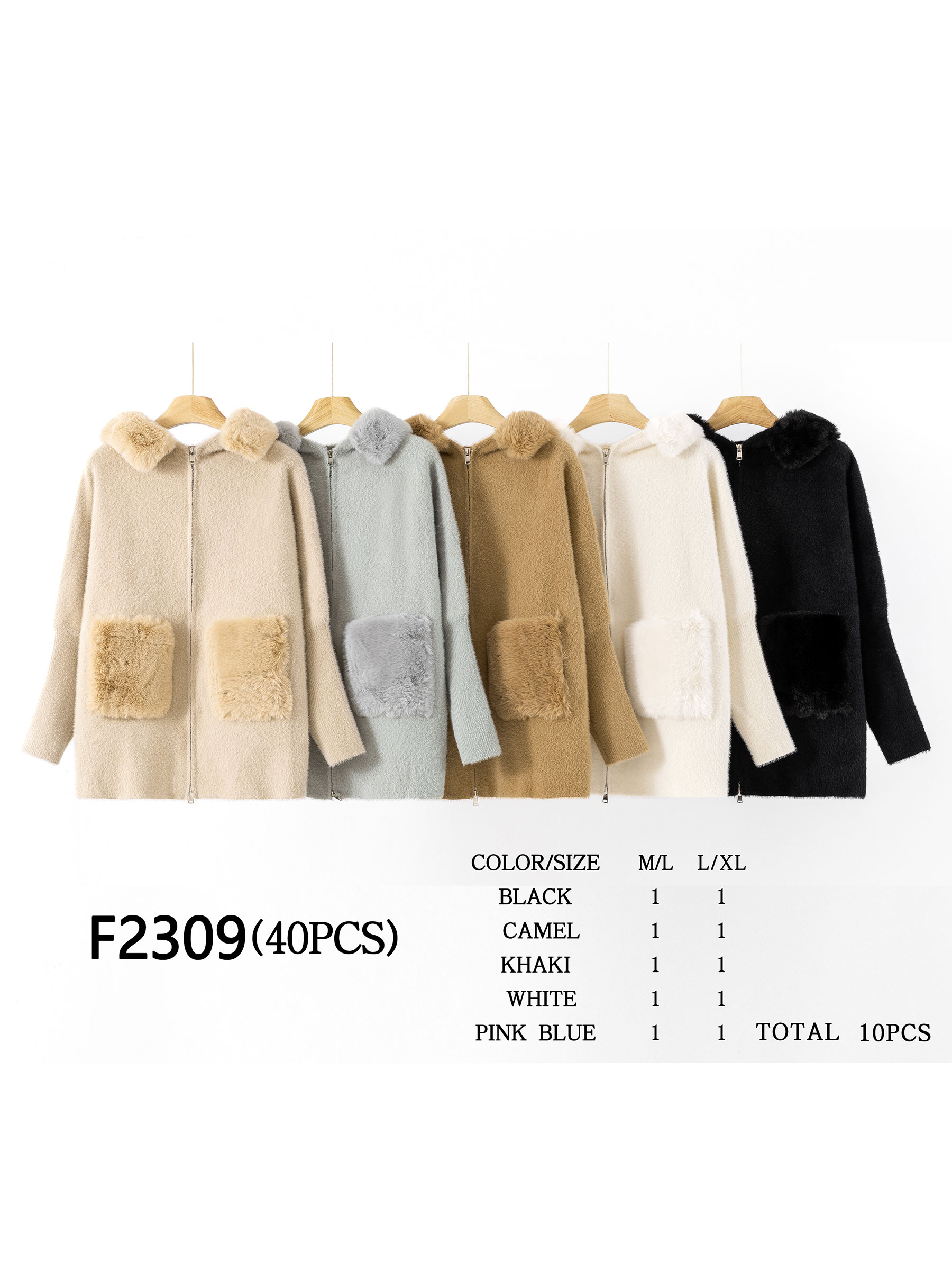 Detalles de chaqueta punto capucha pelo DB-F2309