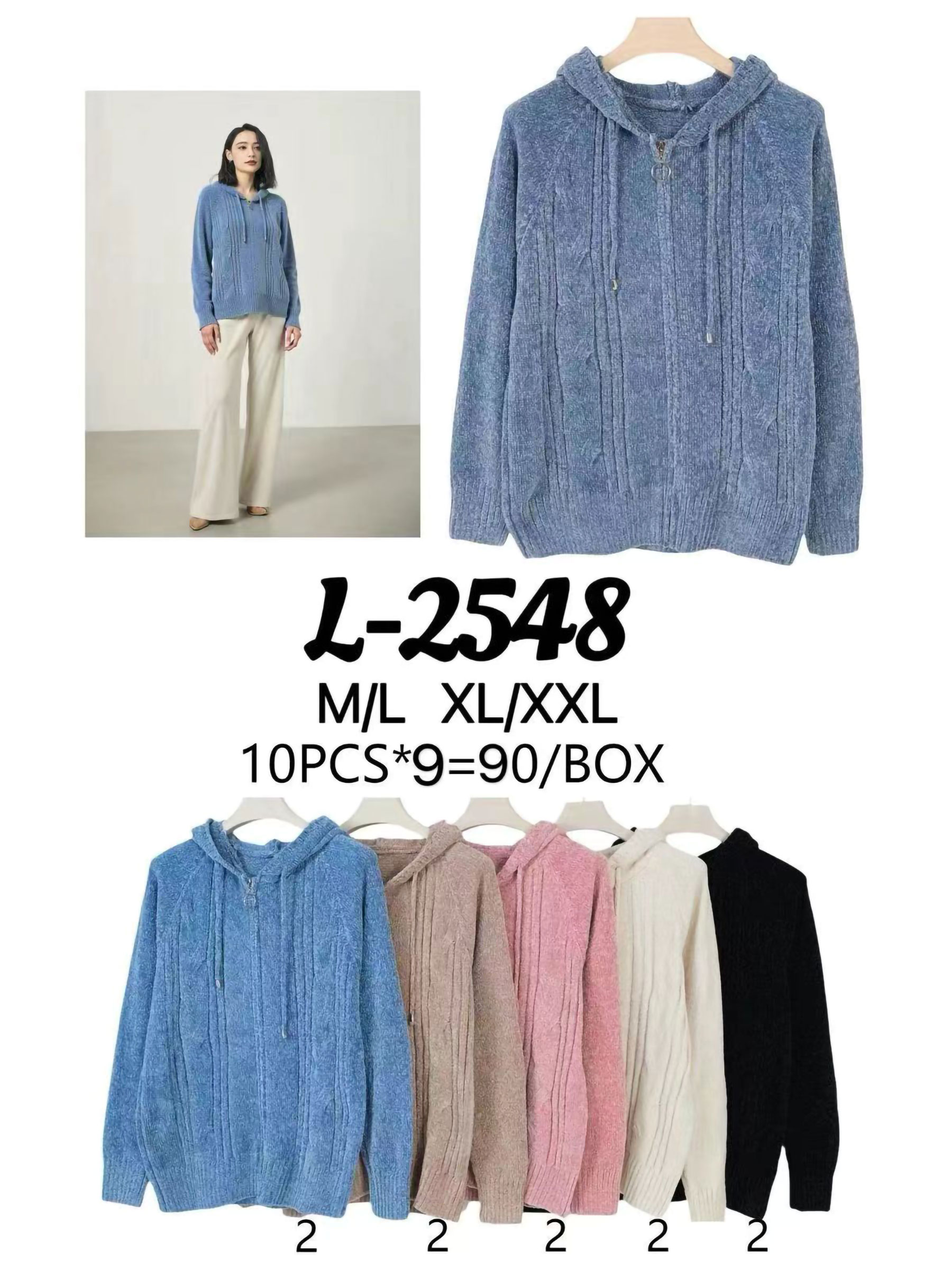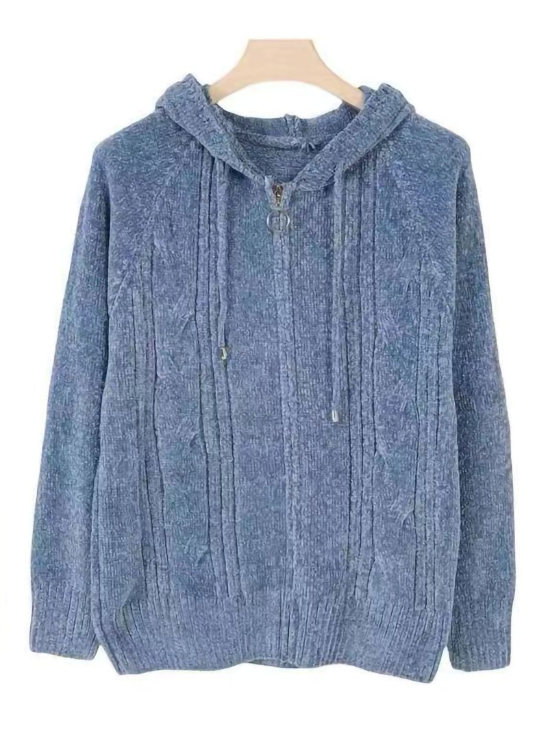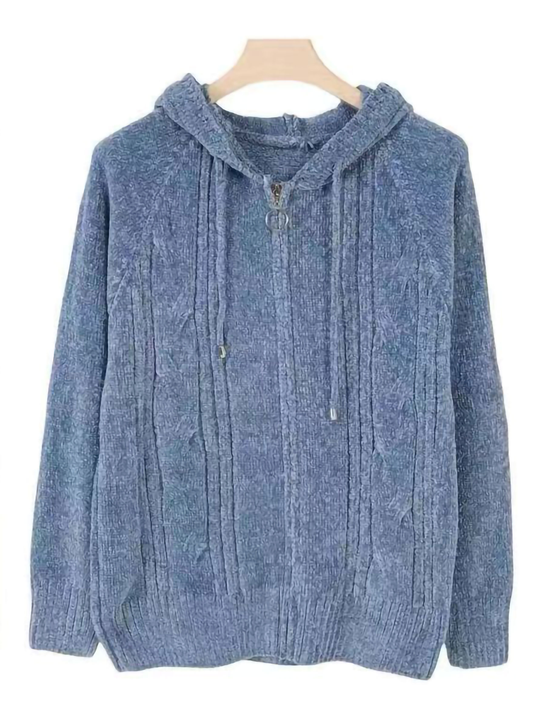 Detalles de chaqueta de punto chenilla trenzada con capucha LS-L2548