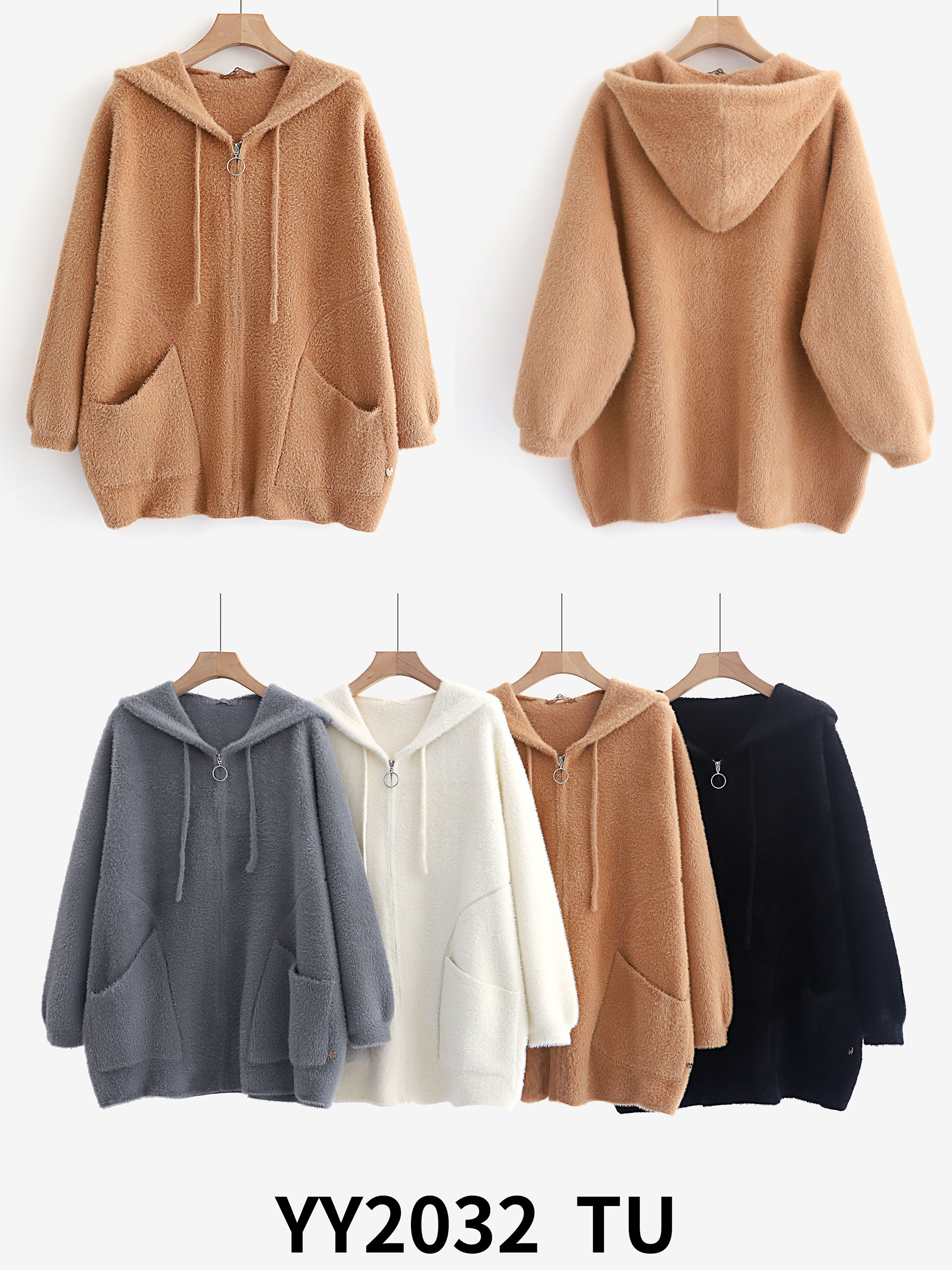 Detalles de chaqueta oversize de punto pelo con capucha ZD-YY2032