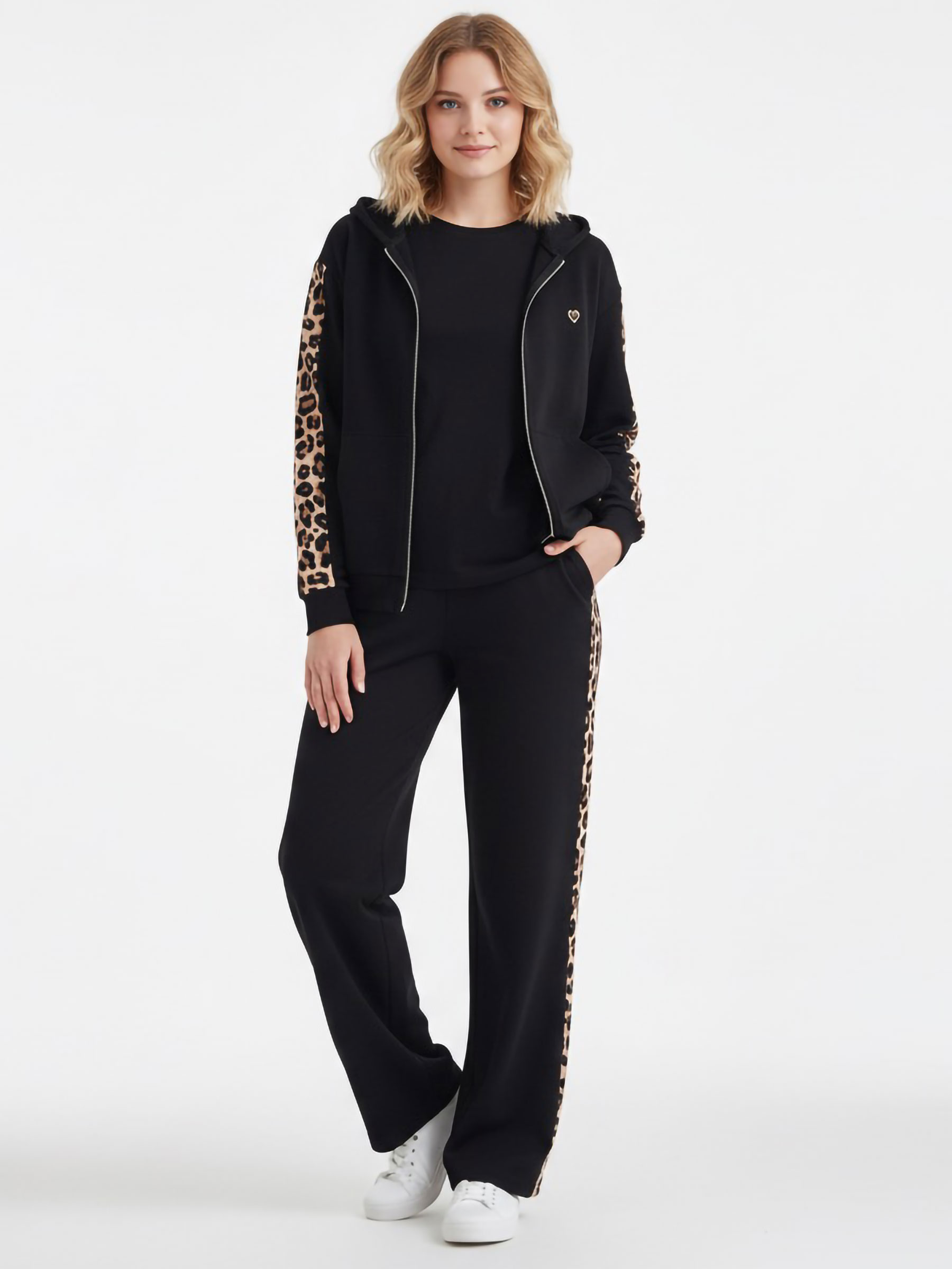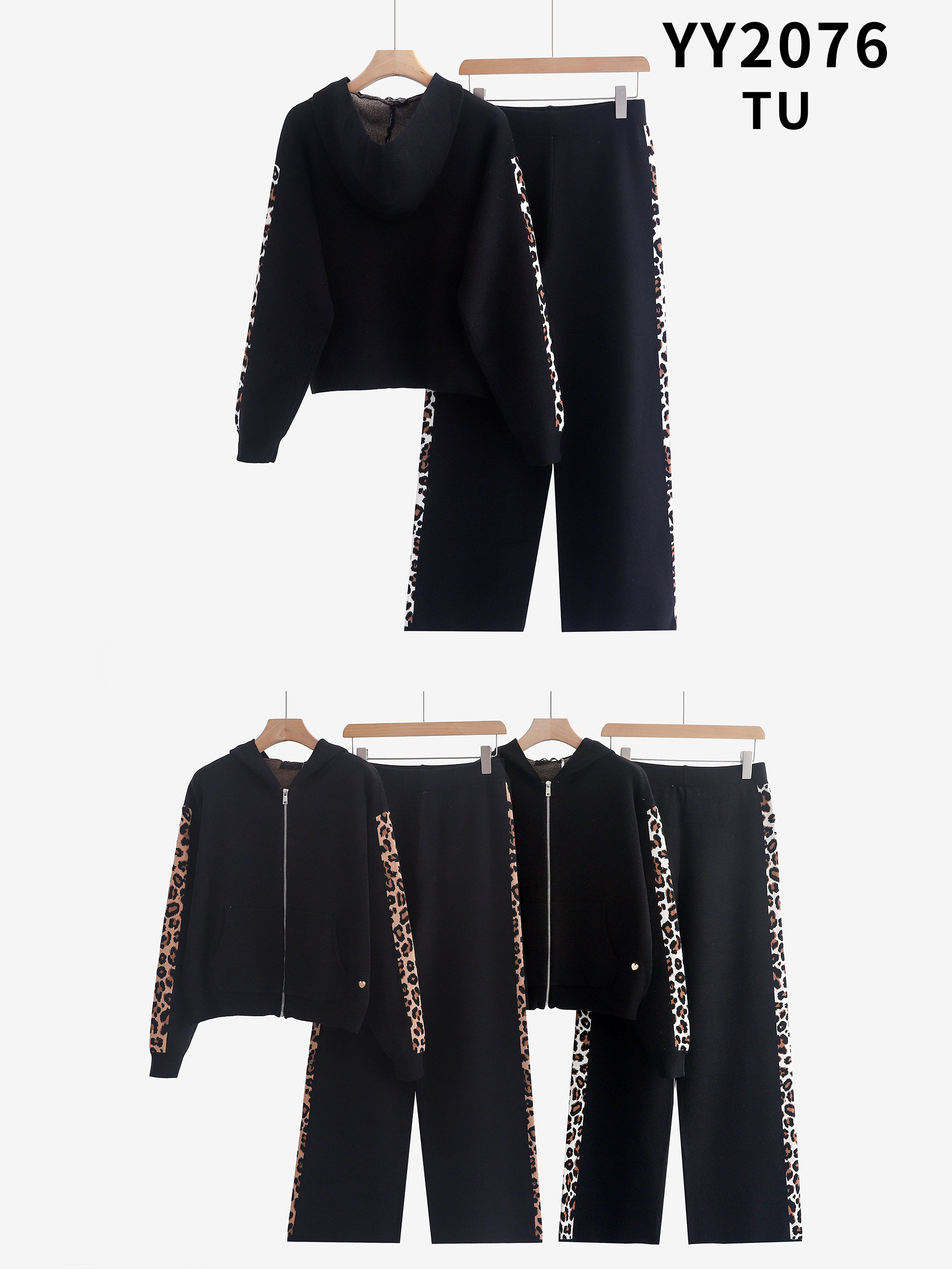Detalles de conjunto sudadera punto banda animal print + pantalón ZD-YY2076