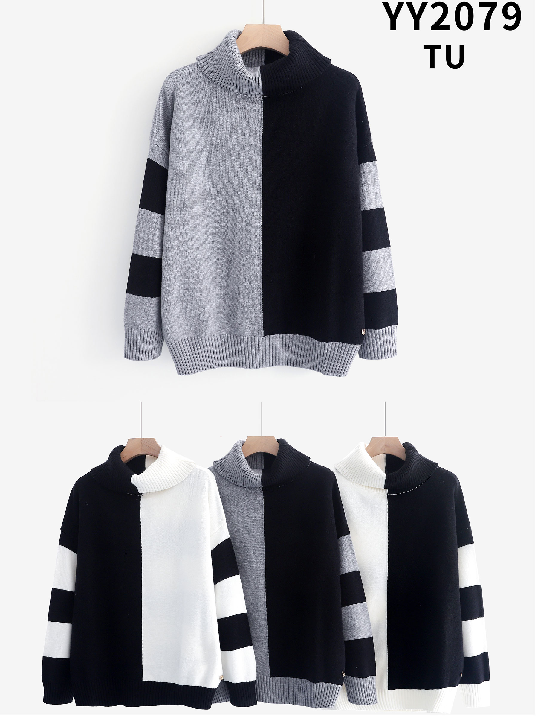 Detalles de jersey bicolor cuello vuelto ZD-YY2079