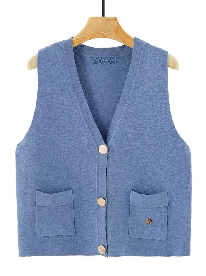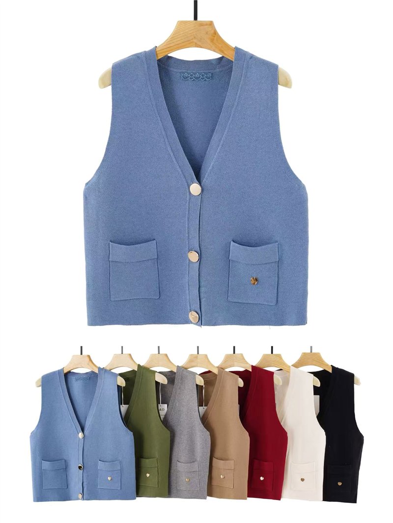 Detalles de chaleco punto botones dorados cuello pico ZD-ZD6082