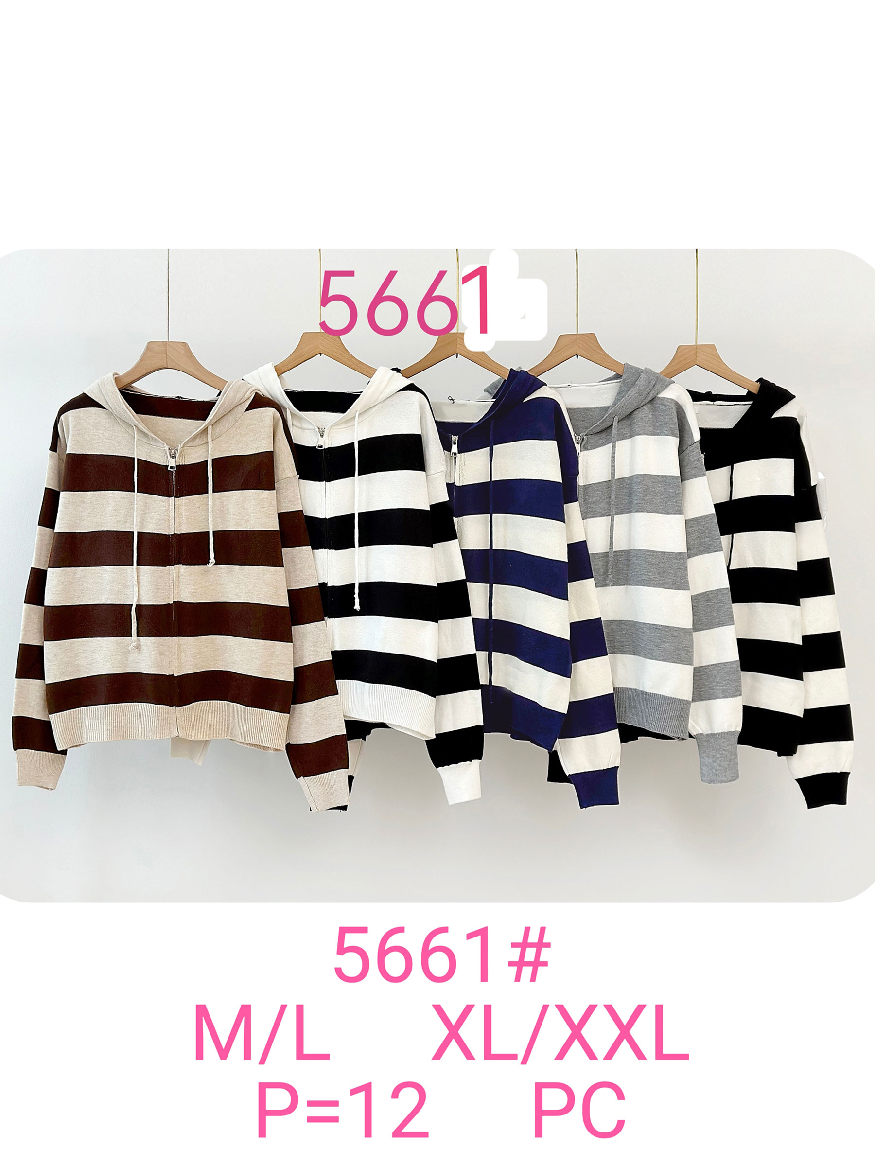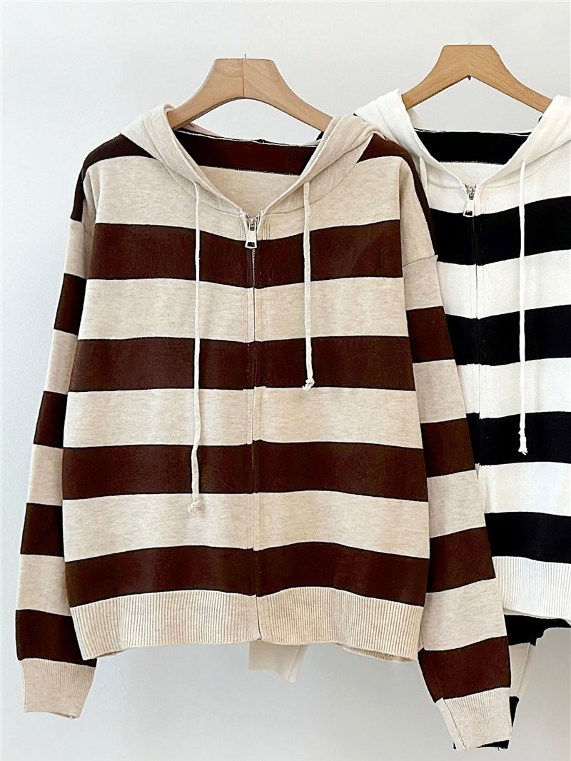 Detalles de chaqueta punto rayas con capucha FA-5661