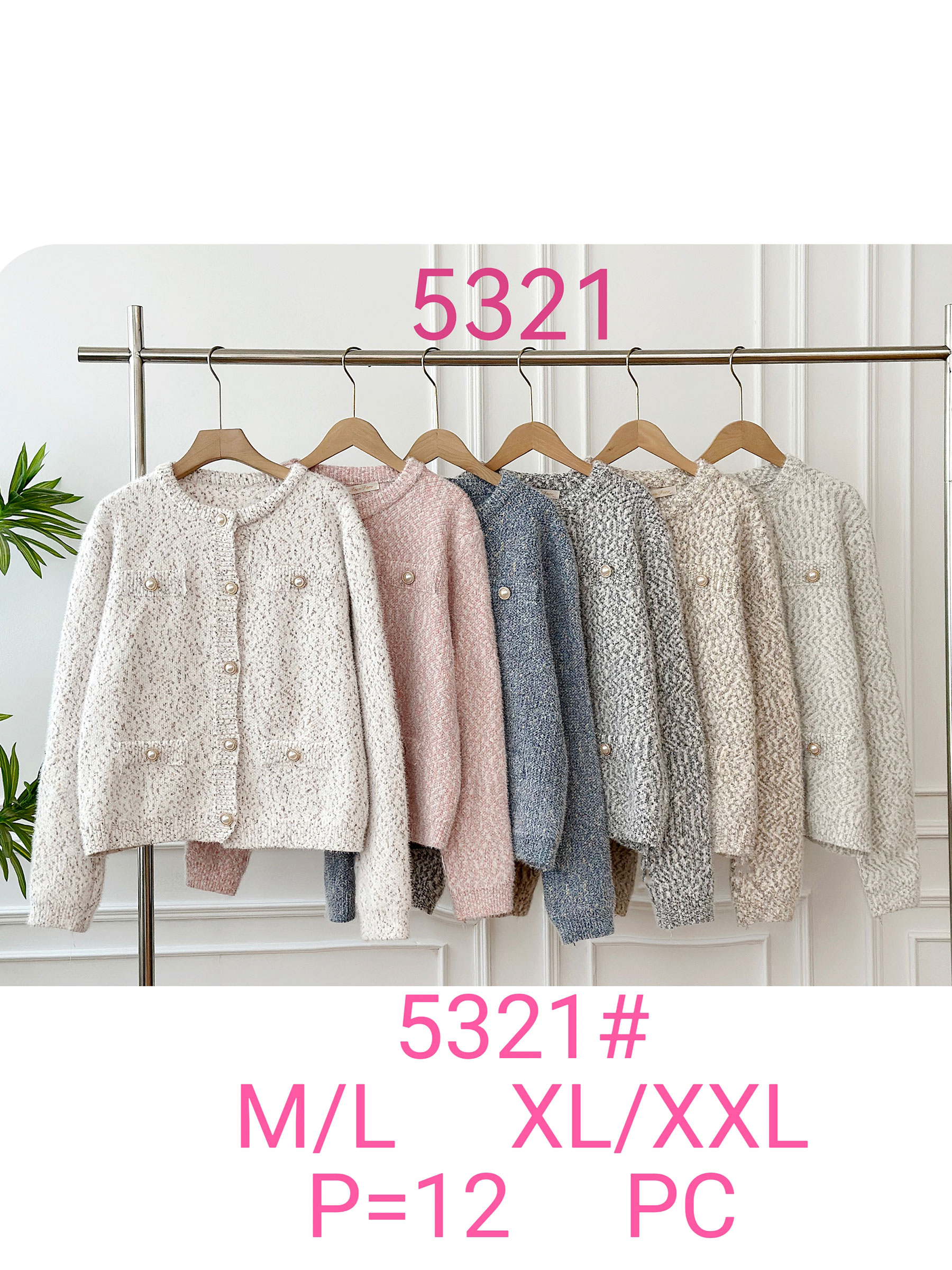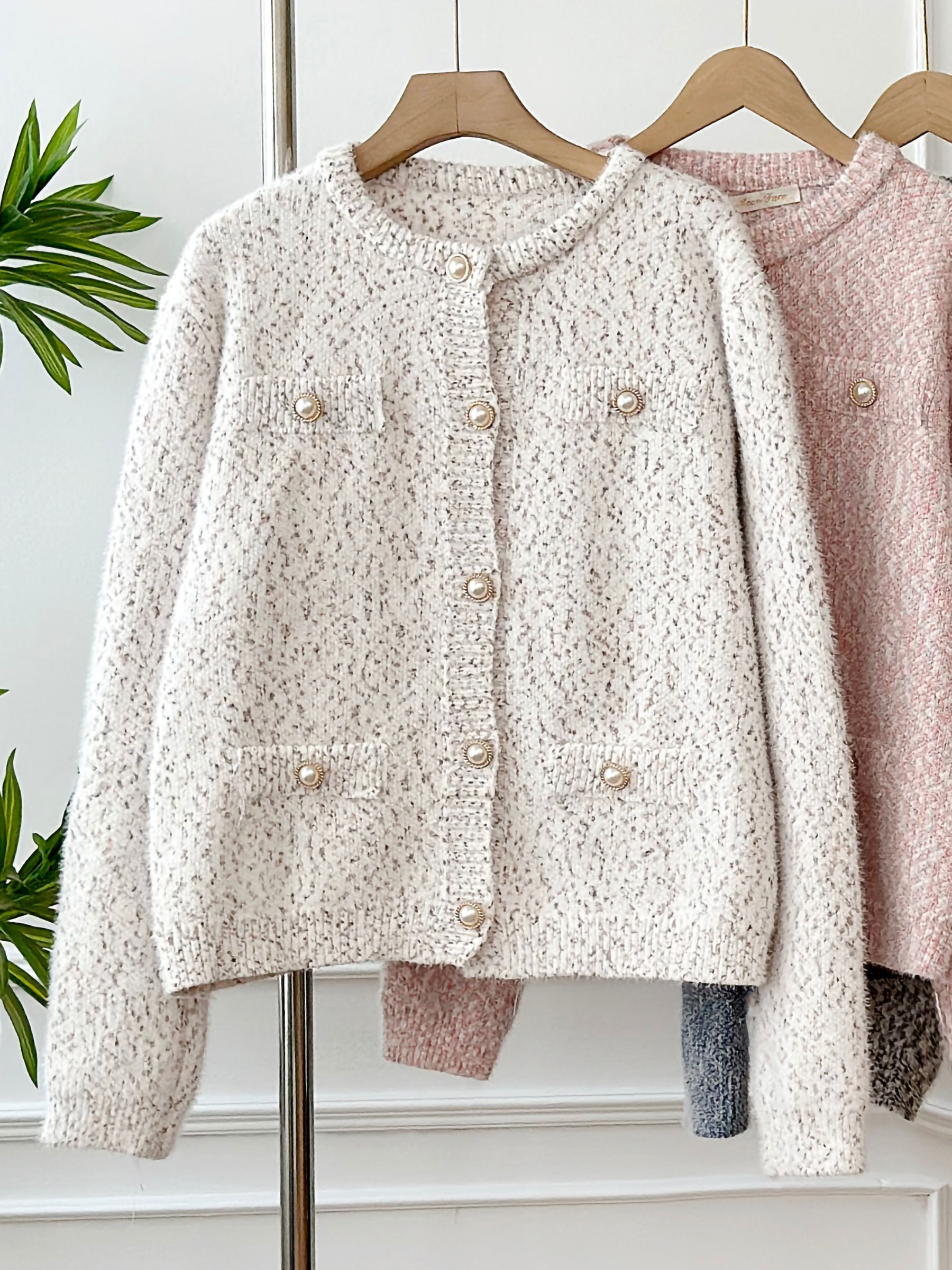 Detalles de chaqueta punto jaspeado botones perla FA-5321
