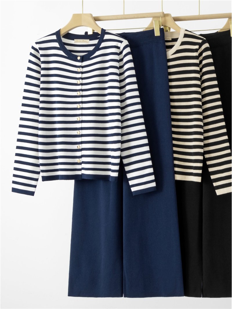 Detalles de conjunto chaqueta punto rayas + pantalón FA-9932