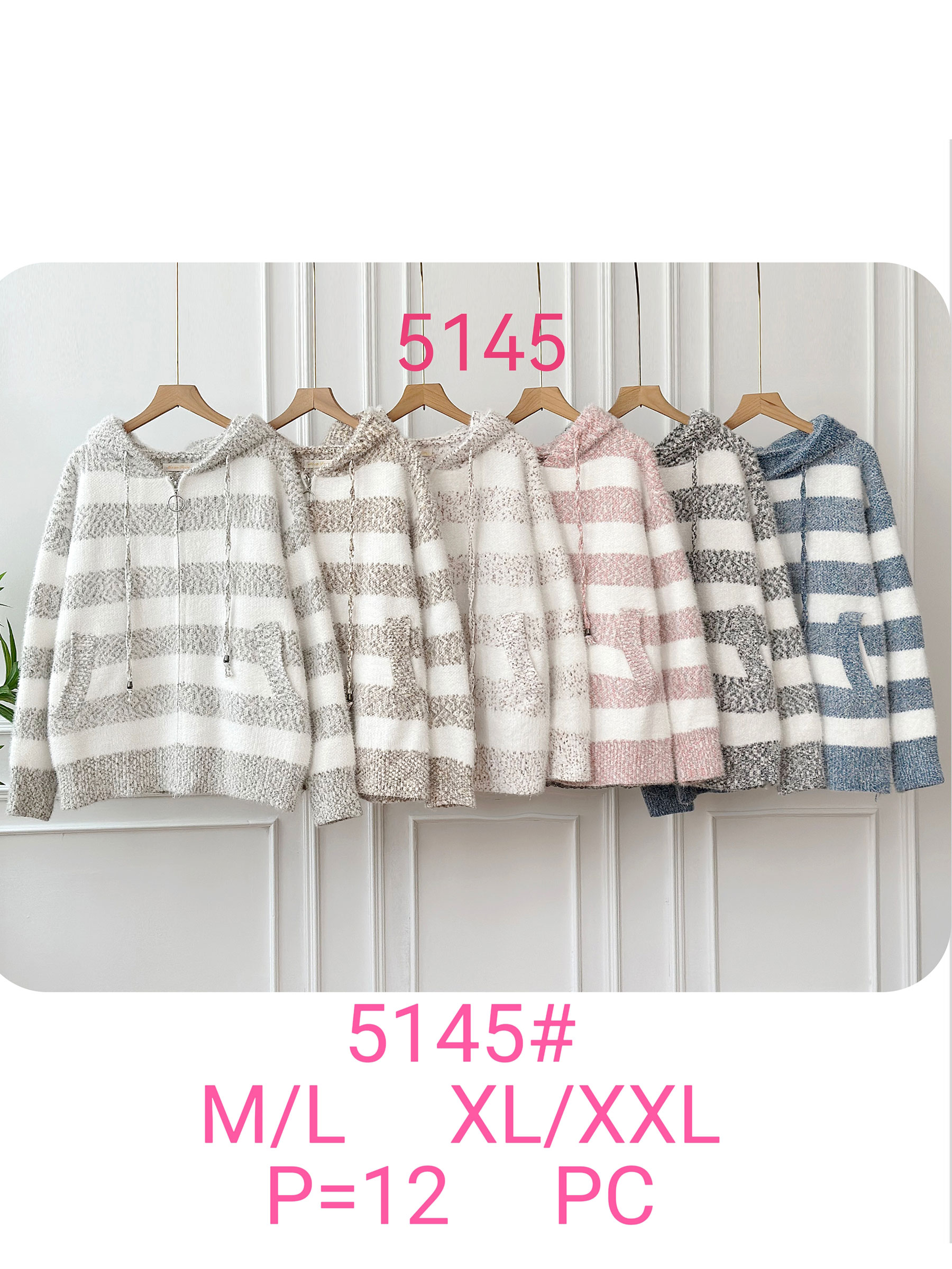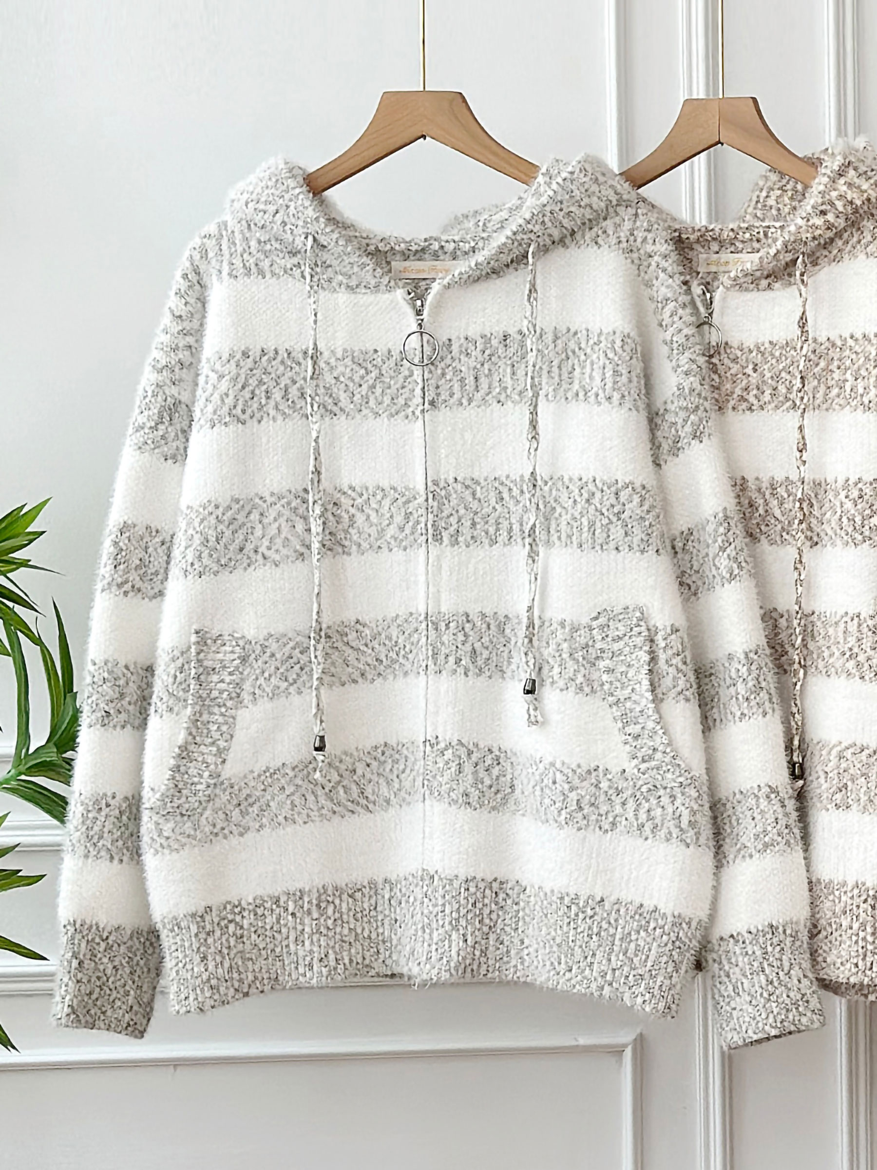 Detalles de sudadera punto rayas bouclé con capucha y cremallera FA-5145