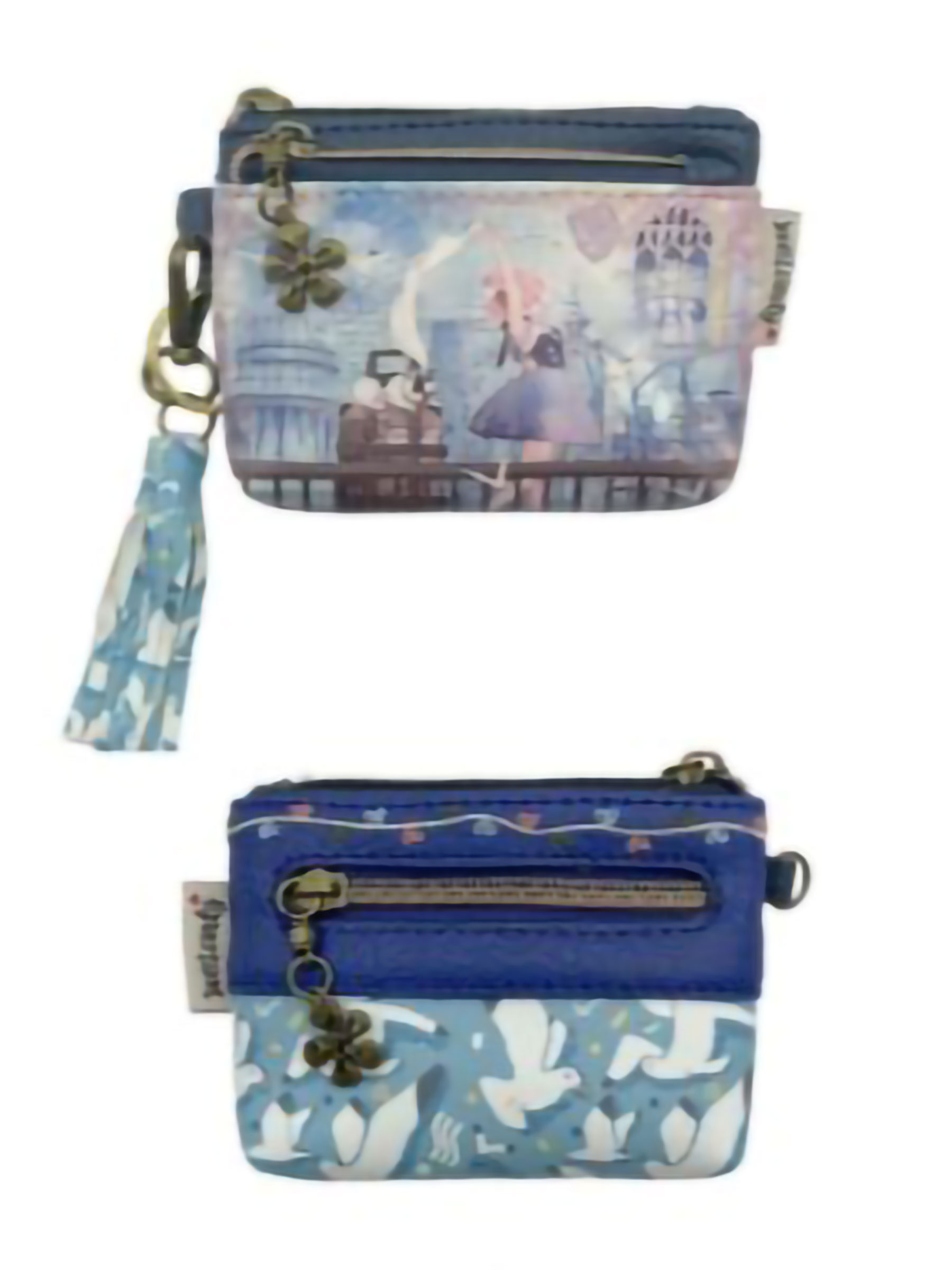 Monedero estampado. Material polipiel. Cierre mediante cremallera metálica.